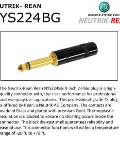 Este es un conjunto de cables personalizados, hecho por WORLDS BEST CABLES (WBC). Este conjunto de cables está hecho utilizando el cable Mogami 2319 y conectores Neutrik-Rean NYS224BG chapados en oro de 1/4 de pulgada (6.35 mm) TS de 2 polos. La bota triple ensamblada a mano escalonada protege el cable de daños causados por tensiones de manejo. En WBC siempre fabricamos conjuntos de cables de clase mundial utilizando muchas de las principales marcas de cables y conectores. Si no puedes encontrar la longitud y tipo de cable que buscas, no dudes en contactarnos, nos esforzaremos por ensamblar el cable requerido para ti. IMPORTANTE, TEN EN CUENTA: La longitud del cable se mide desde la PARTE SUPERIOR DE LA FUNDA hasta la PARTE SUPERIOR DE LA FUNDA de cada conector (los detalles de la medición se muestran claramente en una de las imágenes de la galería para aclarar aún más el proceso de medición. Hay muchas imágenes en la galería, haz clic en la imagen principal para abrir la galería completa).