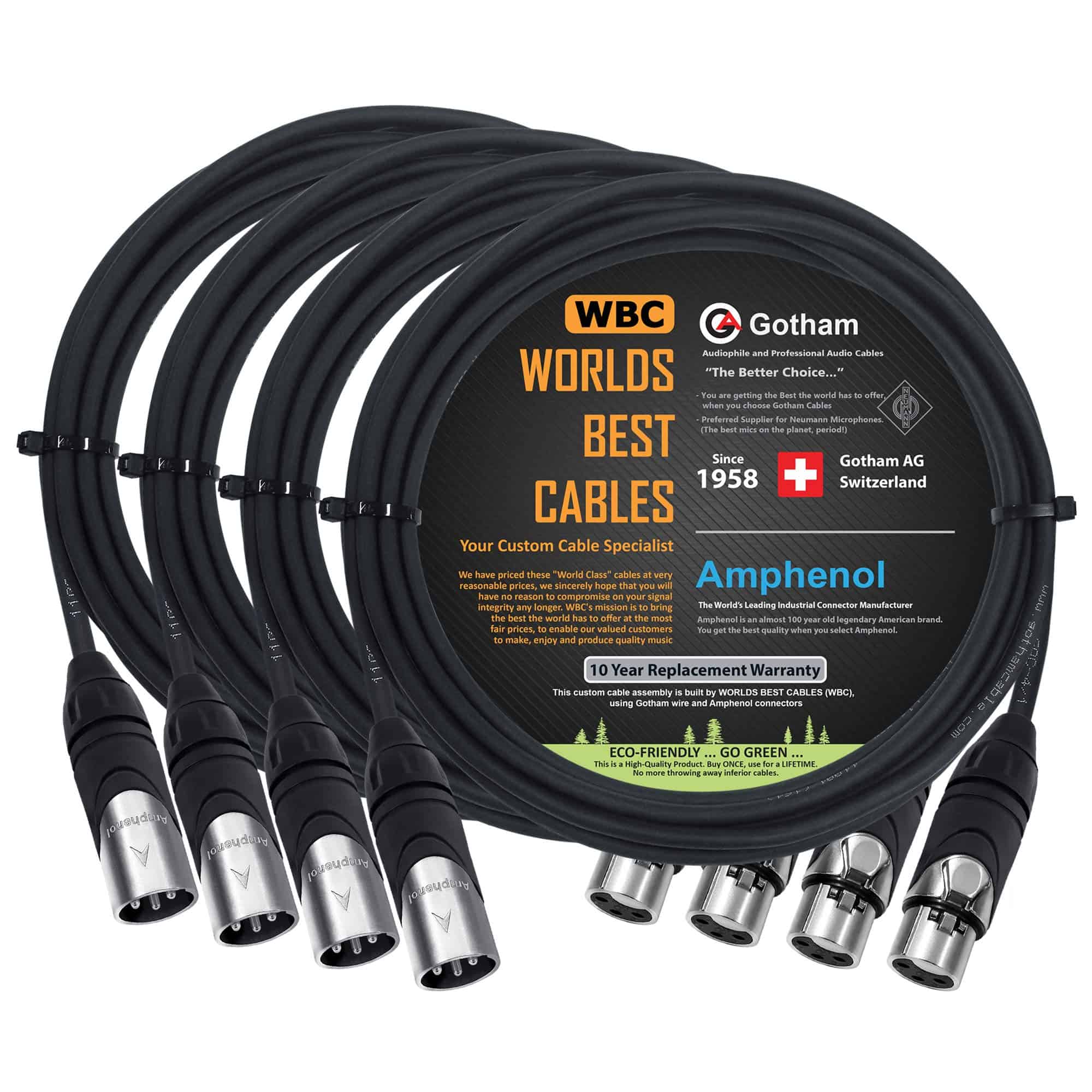 4 Unidades – Hecho a Medida – 8 Pies Gotham GAC-4/1 (Negro) – Cuádruple estrella, Cobre LCOF (Cobre Libre de Oxígeno Cristalino Lineal) Doble Blindado (100% de cobertura para cada blindaje) Cable de Micrófono Balanceado terminado con Conectores Macho XLR Plateados Amphenol AX3M y Conectores Hembra XLR Plateados Amphenol AX3F (esta venta es para 4 cables, cada cable tiene 8 pies de largo).