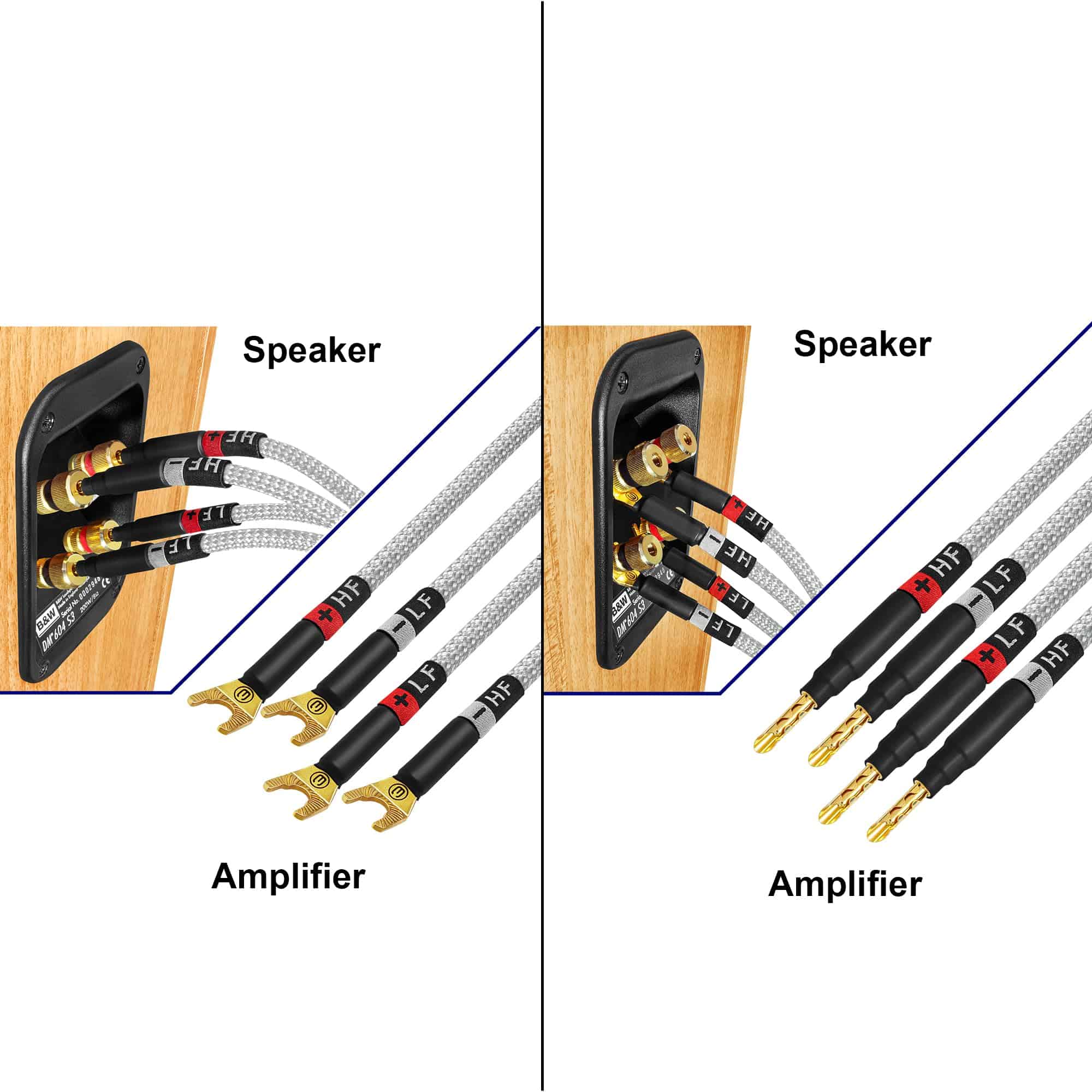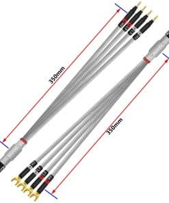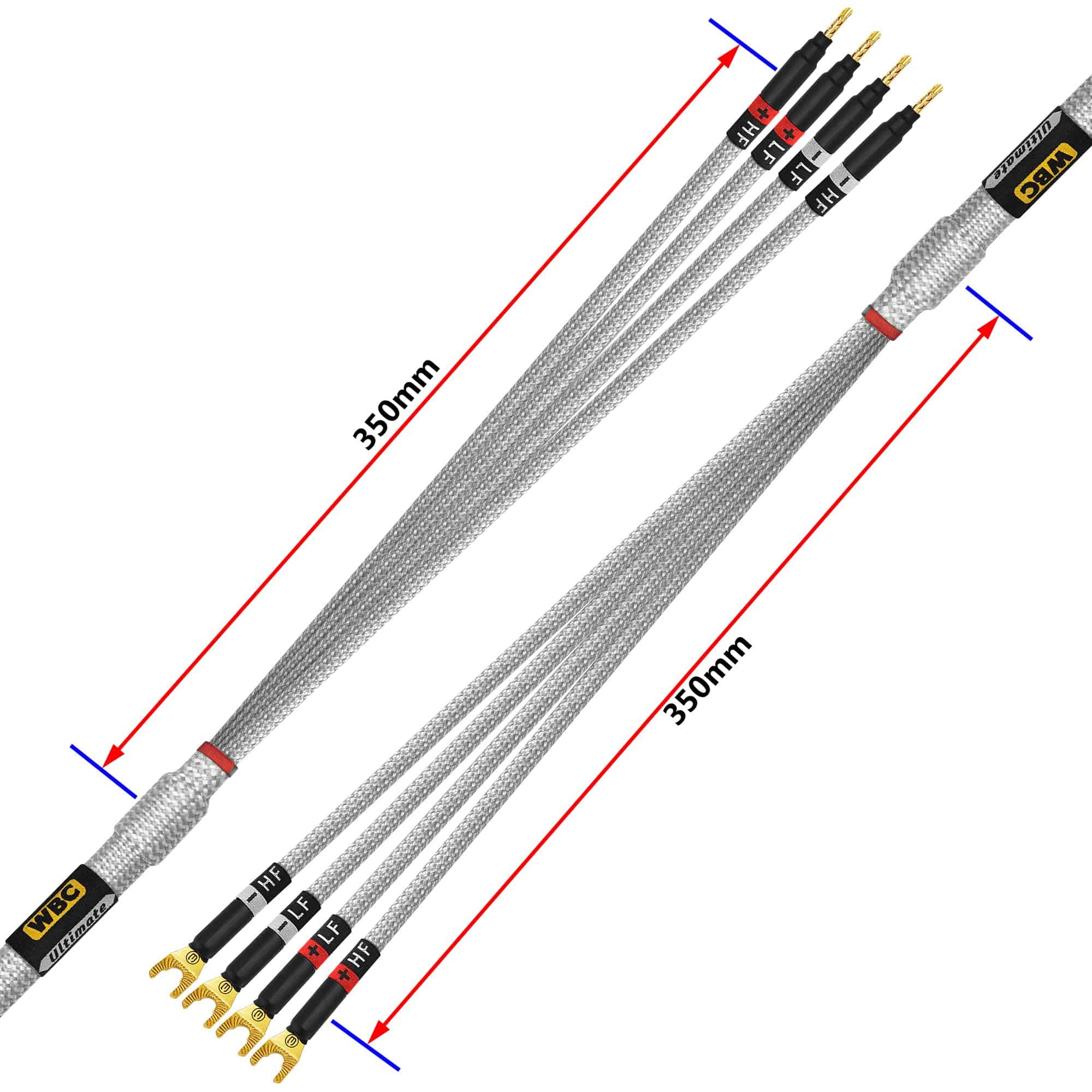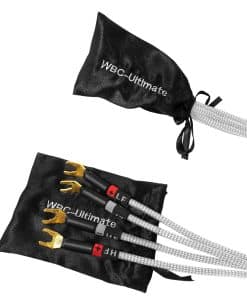 Con la gama de cables de ensamblaje WBC Ultimate, experimentarás lo mejor que WBC tiene para ofrecer mientras disfrutas de la estética agradable que estas lujosas asambleas traerán a tu sistema. El empaque de alta gama hace de estos un gran regalo para cualquier audiófilo o amante de la música que apreciará los cables de audio de alta calidad y hechos a mano. La chaqueta de tejido trenzado de tweed y la etiqueta bordada complementarán tu equipo de alta gama de manera muy elegante; este es verdaderamente el cable de altavoz definitivo. En WBC solo utilizamos conectores de la más alta calidad para estas asambleas de cable para audiófilos. Conectores para banana de Eminence de 24K bañados en oro de 3 micrones, grado audiófilo, de 4 mm (diámetro estándar) con un cuerpo completamente aislado para evitar cortocircuitos accidentales y conectores multi-espiga (compatibles con postes de unión de 8 mm y 6 mm), que ofrecen una resistencia superior a la abrasión y corrosión y un rendimiento incomparable. Los conectores de banana y espiga están especialmente reforzados para soportar cables de calibre pesado (eje especial y perfil más grueso). Todos nuestros cables a medida se sueldan profesionalmente utilizando la mezcla de soldadura de plata 4% y un proceso de soldadura asistida por nitrógeno único para nosotros, superando los estándares de la industria, mejora la integridad de las uniones de soldadura sobre los métodos tradicionales. La chaqueta de tweed se aplica a mano mientras que la etiqueta bordada también se cose a mano en su lugar, resultando en un cable verdaderamente artesanal. Los cuatro estuches de tejido para cubrir los conectores y la caja de regalo son reutilizables. Esta venta es para un par de cables de altavoces Bi-Amp, un cable para cada canal izquierdo y derecho. Cada cable de altavoz mide 6 pies de largo. Estos son cables hechos a medida ensamblados con amor por WORLDS BEST CABLES, ofrecemos la mayor variedad de cables personalizados en el mercado, llevamos todas las marcas principales de cables y conectores. Hemos servido a millones de clientes con ensamblajes de calidad durante muchos años y la riqueza de conocimientos recopilados se vierte en la gama de cables de ensamblaje definitivo de WBC.
