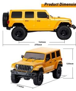 EAZYRC Arizona 1:18 2.4G 4WD Vehículo RC Crawler Todoterreno – Fiel al lema: ¡Desempaca y diviértete! EAZYRC desea crear productos de alta calidad pero económicos para principiantes en la construcción de modelos. Arizona es un crawler a escala mini en escala 1:18 y se entrega en versión lista para funcionar (Ready to Run). CARACTERÍSTICAS: Crawler a escala mini en escala 1:18 con tracción a las cuatro ruedas total Proporcionalidad total de la dirección Carrocería de plástico duro moldeado por inyección Capó articulado con función Suspensión de eje realista Defensas y portaequipajes de aluminio Neumáticos M/T de alta tracción Iluminación LED funcional Reducción potente con 84:1 FDL Servo montado en el chasis Amortiguadores Batería lipo 2S 7.4v 380mAh para un tiempo de conducción de hasta 30 minutos Control remoto de 2.4GHz y receptor con señal estable Para Edad: 14+ ESPECIFICACIONES: Distancia entre ejes: 162mm Altura del suelo: 36mm Ángulo de aproximación: 55° Ángulo de salida: 56° Diámetro del neumático: 56mm Peso del automóvil: 404g (sin batería) Peso del control remoto: 170g (sin batería) Relación de transmisión: 84:1 Velocidad: 5km/h Motor: Motor cepillado 050 ESC/Receptor: ESC y receptor 2 en 1 de 5A Servo: Servo de plástico de cinco hilos de 9g Controlador remoto: Controlador remoto inalámbrico de 2.4GHz Distancia de control: 30m Batería del control remoto: Batería AA x 4 (no incluida) Batería del automóvil: Lipo 2S 7.4V 380mAh (incluida) Duración de la batería: 30 minutos Tiempo de carga: 180 minutos Cargador: USB CONTENIDO DEL PAQUETE: 1 Coche RC EAZYRC 1 Control remoto 1 Cargador USB 1 Batería Lipo 2S 7.4V 380mAh