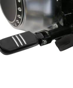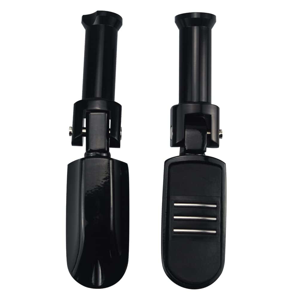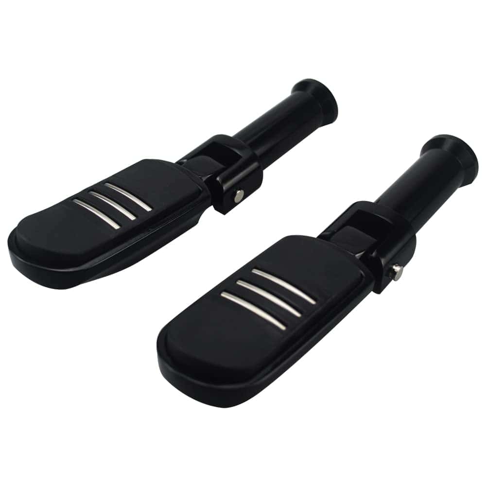Peldaños de pasajeros negros brillantes con kit de montaje de soporte para modelos Softail 2018-2024 (excepto FXDRS), no compatible con Tapa de Pivote del Brazo Oscilante de Bronce P/N 61400344