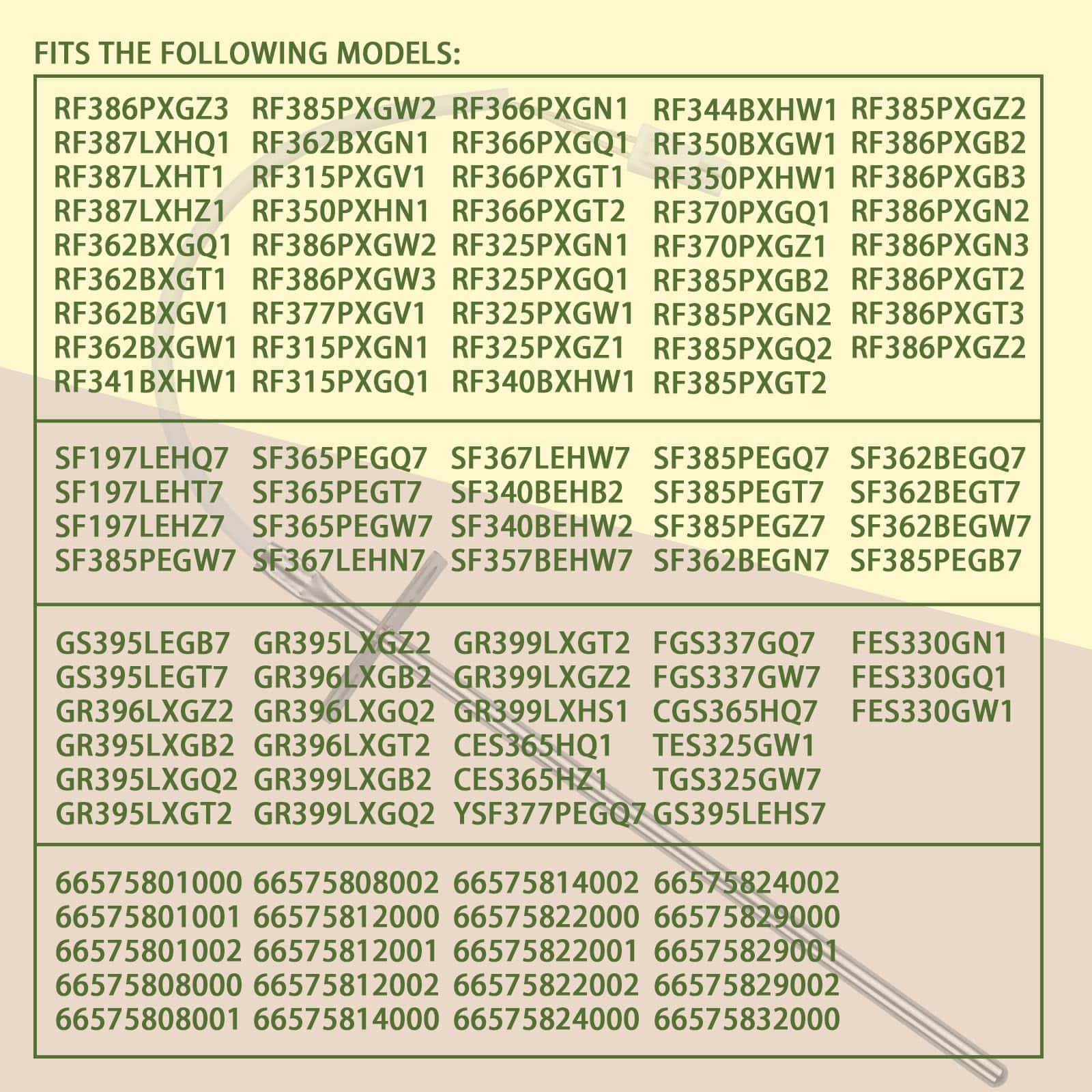 4. Se adapta a los siguientes modelos: RF385PXGZ2 RF386PXGB2 RF386PXGB3 RF386PXGN2 RF386PXGN3 RF386PXGT2 RF386PXGT3 RF386PXGZ2 RF386PXGZ3 RF387LXHQ1 RF387LXHT1 RF387LXHZ1 CES365HQ1 CES365HZ1 FGS337GQ7 FGS337GW7 CGS365HQ7 GS395LEGB7 GS395LEGT7 FES330GN1 FES330GQ1 FES330GW1 SF362BEGN7 SF362BEGQ7 SF362BEGT7 SF362BEGW7 GR396LXGZ2 RF362BXGN1 RF315PXGV1.