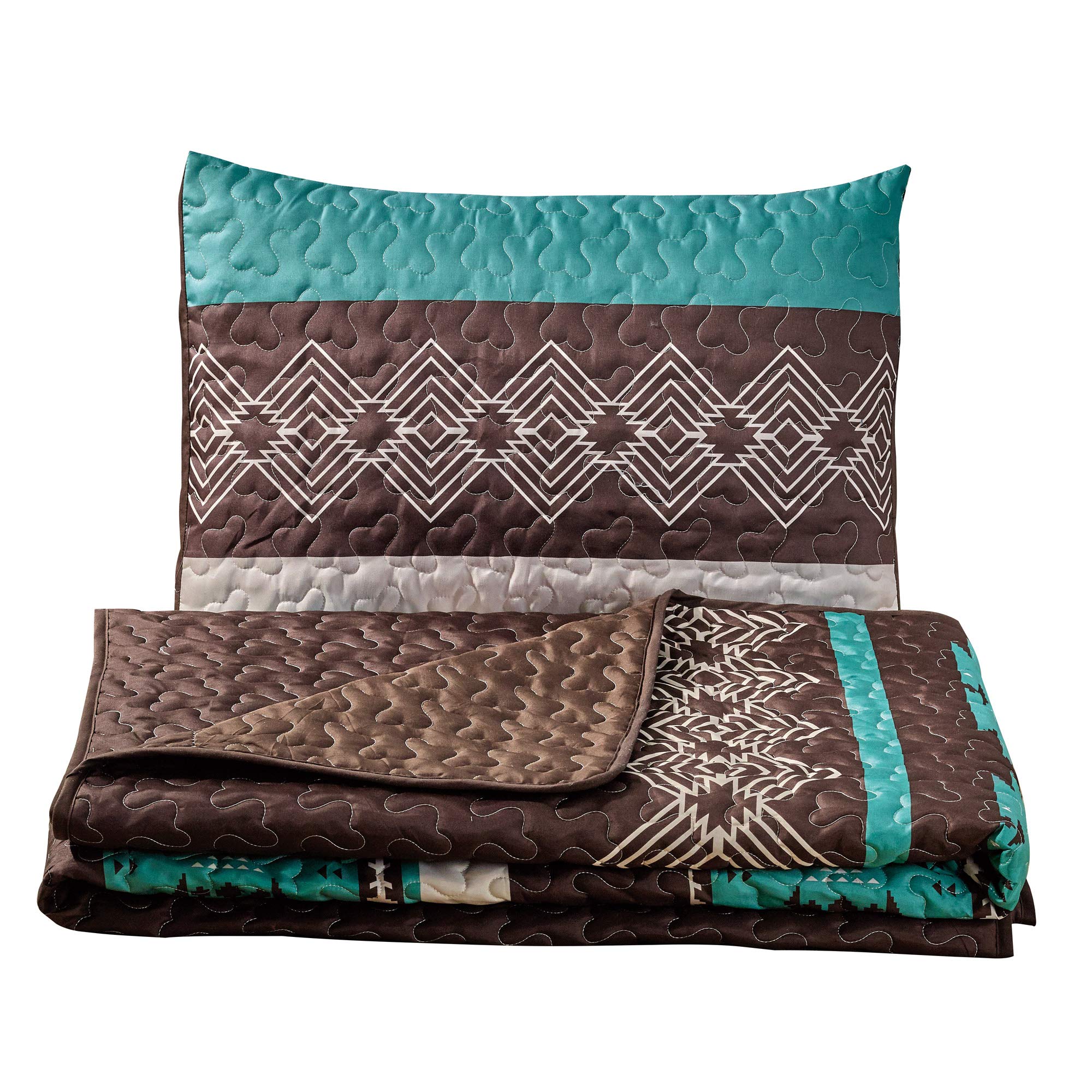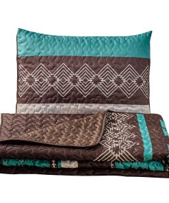 Conjunto de colcha del suroeste inspirado en la rica herencia cultural del suroeste de Estados Unidos, con colores vibrantes y patrones geométricos intrincados. Incluye 1 colcha de tamaño king y 2 fundas de almohada.