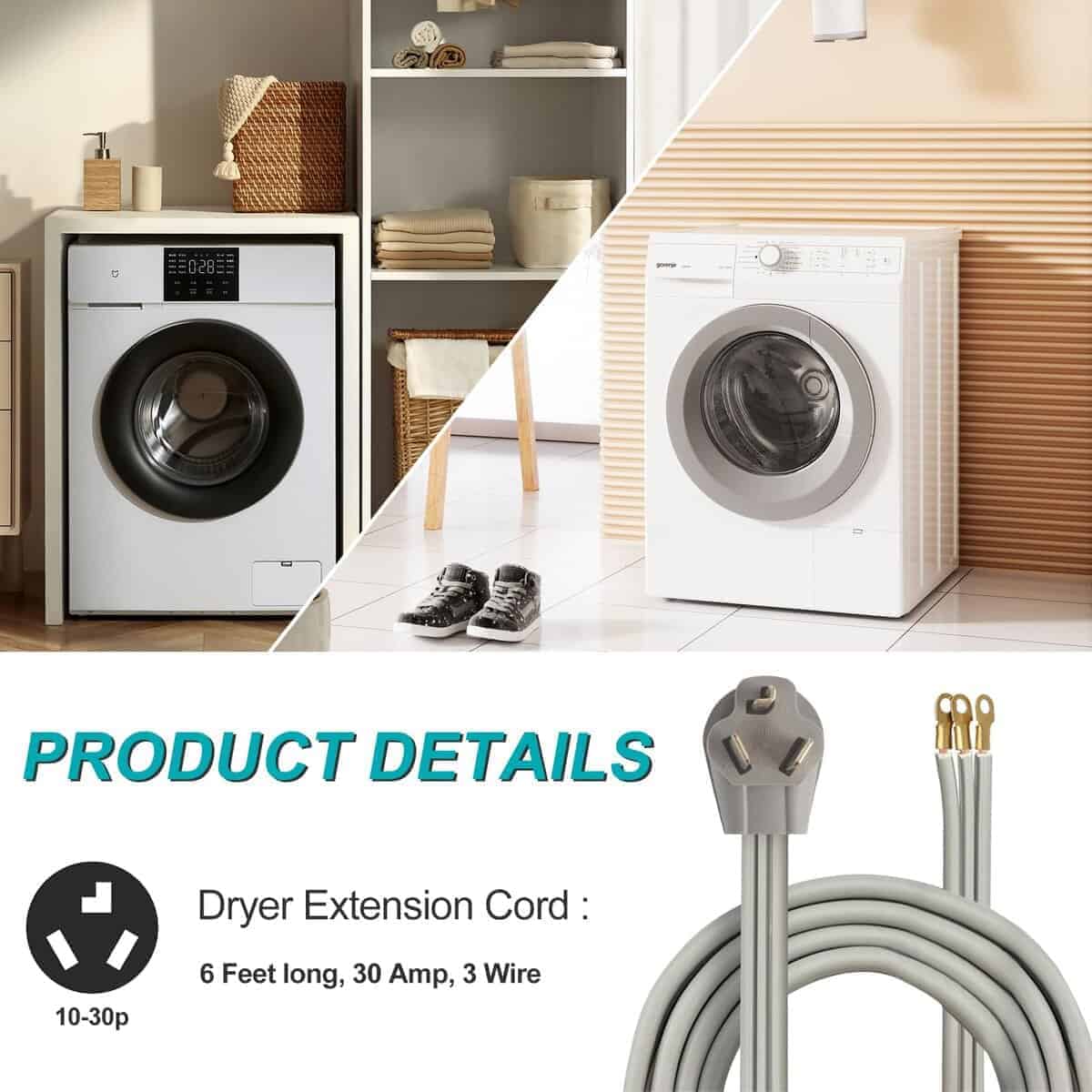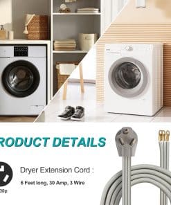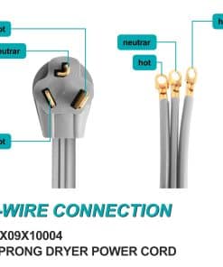 El cable de alimentación para secadora WX09X10004 de 3 clavijas de 6 pies es la solución perfecta para conectar su secadora eléctrica a una toma de corriente de 3 clavijas. Con una clasificación de 30 amperios, este cable es lo suficientemente resistente para uso doméstico y comercial. Los enchufes moldeados en ángulo recto ayudan a mantener los cables cerca de la pared, lo que ahorra espacio y facilita la conexión a la secadora. El cable incluye 1 par de clips de alambre para aliviar la tensión en los terminales, lo que facilita la instalación y uso. Además, el aislamiento termoplástico asegura durabilidad, flexibilidad y protección contra el calor y la humedad para una larga vida útil del cable.