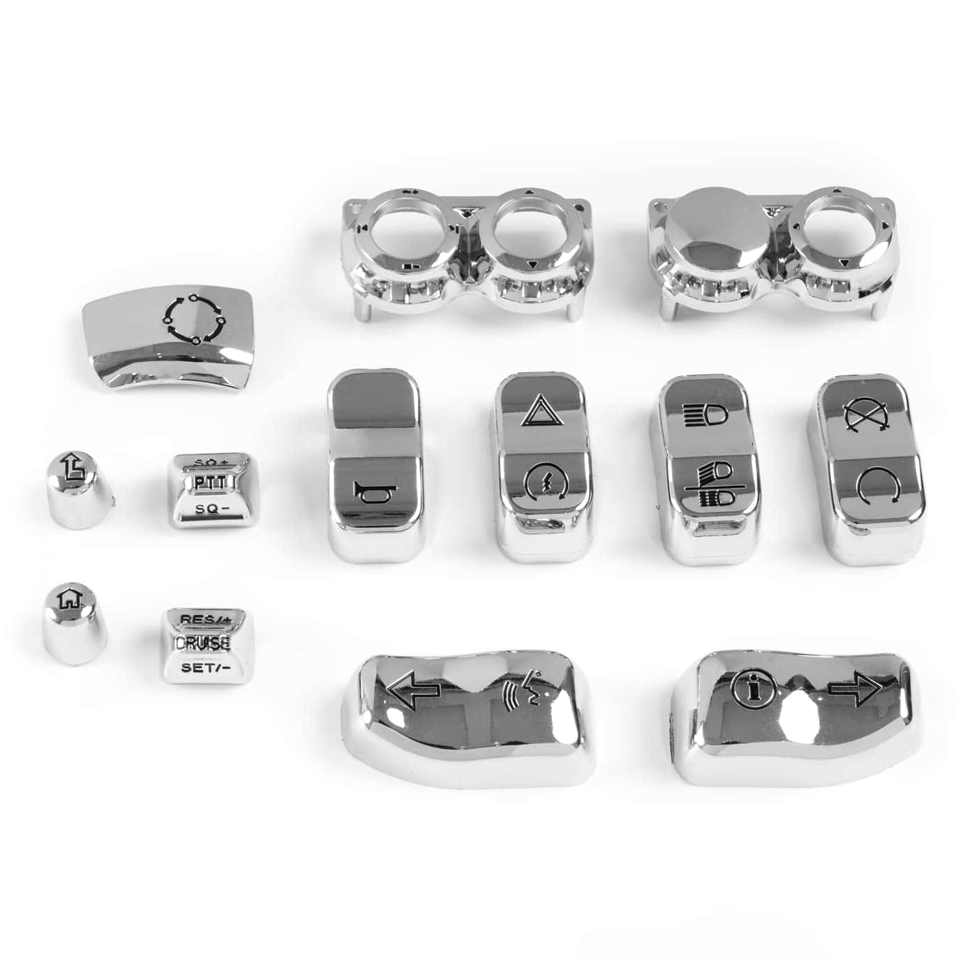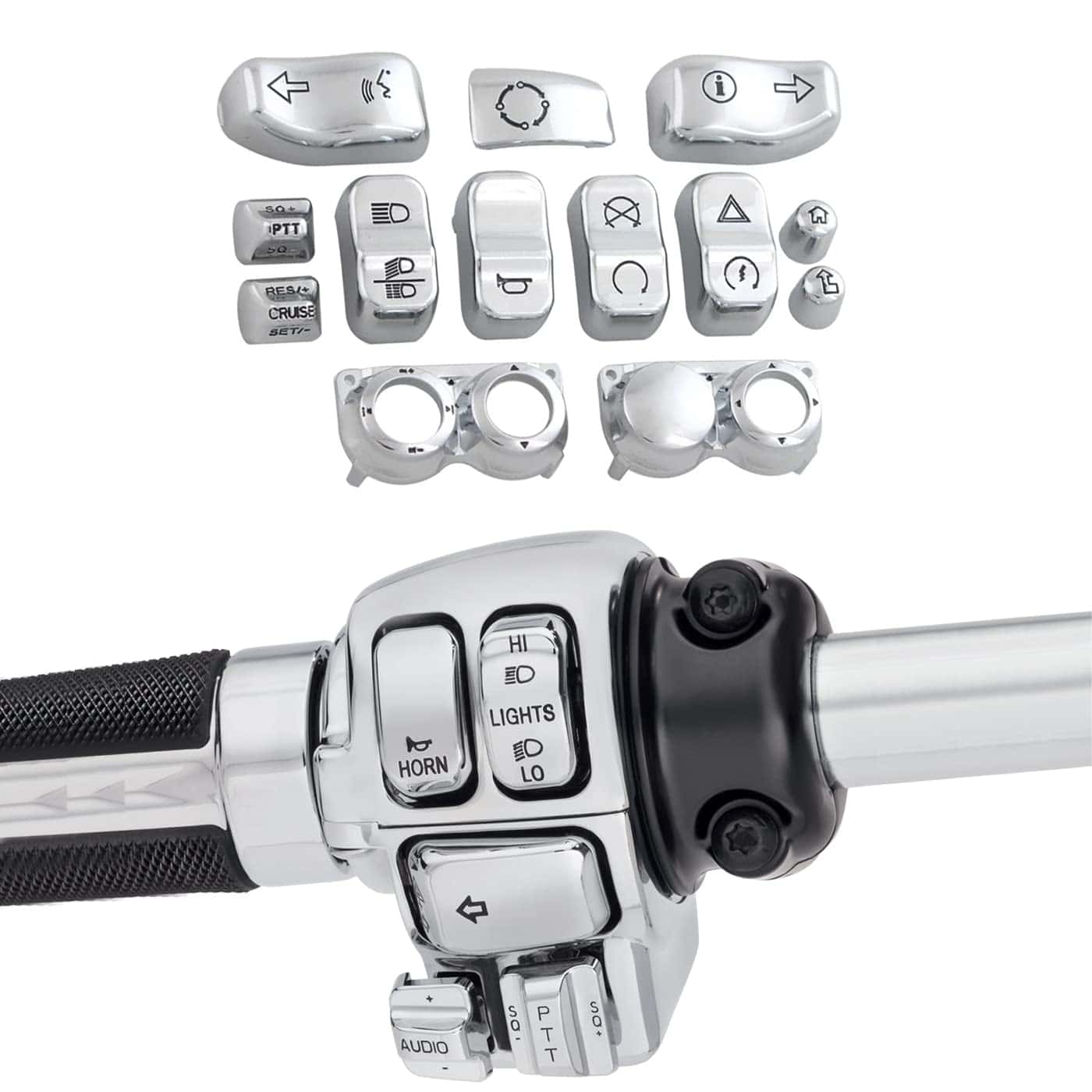 3. FUNCIÓN: Un buen juego de recambio para tus originales dañados o que no funcionan, reemplaza las tapas negras originales sin necesidad de re-cableado. El kit contiene un juego completo de tapas de interruptores cromadas para los interruptores del manillar izquierdo y derecho. Diseñado para ofrecer la misma sensación ergonómica que los interruptores de control manual de Equipo Original.
