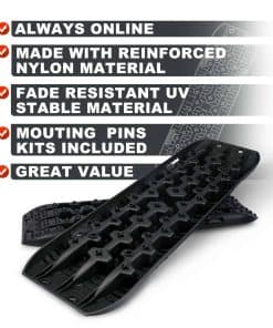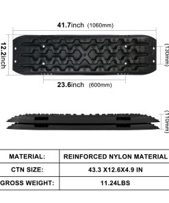 1. Cada pista de tracción mide 41.7 pulgadas de largo, 12.2 pulgadas de ancho y pesa 11.2 libras juntas. Se monta fácilmente en la mayoría de las barras de techo disponibles con pasadores de montaje opcionales. Una resistente bolsa de transporte sirve como un beneficio adicional, brindando mayor conveniencia para el uso diario. Servicio de por vida disponible.