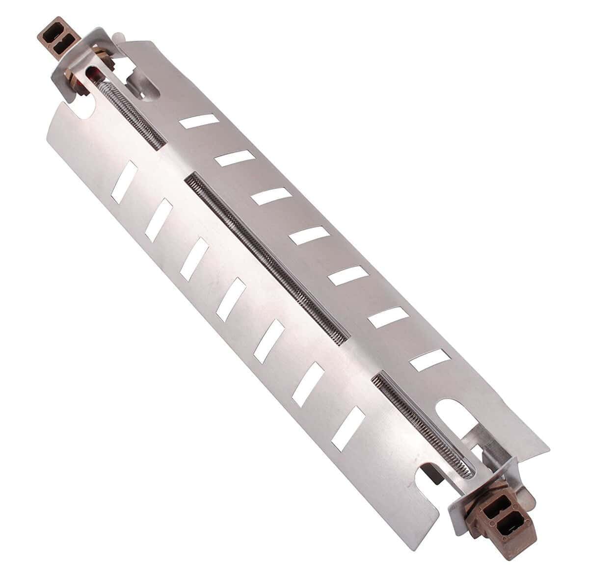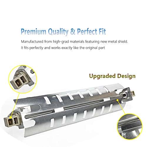 Especificaciones: Modelo: 633854 Nombre del producto: Ensamblaje de calentador y soporte de descongelación Color: Como se muestra en la imagen Material: Metal Aprox. 12 1/2″ de largo Tipo: Calentador de descongelación El calentador de descongelación tiene: Tubo de cuarzo Número de parte: WR51X10055 Características: Está clasificado en 725 vatios. Esta es la pieza de repuesto del mercado de accesorios, Calentador de descongelación para refrigerador con soporte de metal. Pieza de repuesto para el número de parte de GE WR51X10055. Reemplazo para los números AP3183311 y PS303781. Viene sin instrucciones, clips, cable de extensión o conectores de cable. Admite: Calentador de descongelación y soporte para muchos refrigeradores eléctricos. Incluido: General Electric, Hotpoint, Kenmore / Sears, RCA (¡y más!) Nota: 1. Proporcionamos imágenes claras, medidas cuando sea posible. Por favor, compruebe todo lo posible para asegurarse de que el artículo sea el que necesita. 2. Por favor, permita una diferencia de 0.5-1 pulgada debido a la medición manual. (1 pulgada 2.54 cm) 3. No se incluyen instrucciones en este kit. Se recomienda una instalación profesional. 4. Compare el calentador de descongelación con el original antes de comprar. Incluido en el paquete: 1 x Calentador de descongelación (como se muestra en las imágenes)