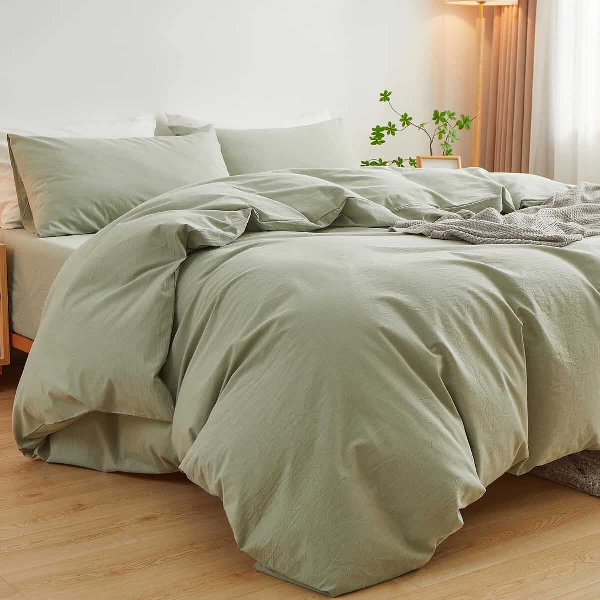 Premium Cotton Bedding: Made with 100% pure cotton, our washed cotton duvet cover has slightly wrinkled look, cozy like linen duvet cover set. It is breathable to keep you cool in hot summer and warm in the winter. What You Can Get: Available in XINMIANFANG washed cotton duvet cover set QUEEN SIZE: 1 Duvet Cover 90″ x 90″ and 2 Pillowcases 20″ x 26″. (NOTE: DUVET & PILLOWS NOT INCLUDED). Plain and Simple: Our linen feel duvet cover set can refresh your home deco with classic style. There is no need to worry about matching, this minimalist solid white duvet cover can match a variety of decoration styles. Suitable for any occasions and seasons, will be a wonderful present for anyone you love as well. Convenient Details: XINMIANFANG washed cotton duvet cover has a hidden zipper closure and 4 corner ties to keep the duvet non-slip and ensure greater comfort at night. About the pillowcase, we believe design of envelope type will make sure the pillow is easy to take out. Satisfaction Service: This sage green washed cotton duvet cover is easy to care for. Machine wash in cold water, gentle cycle, do not bleach, tumble dry at low heat. If unfortunately you are not satisfied with our linen like texture duvet cover set, please feel free to contact us. Hope you enjoy purchasing in our store!