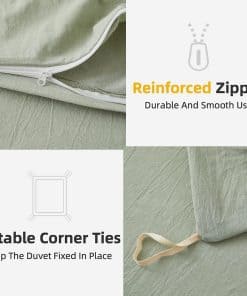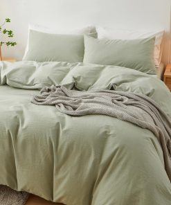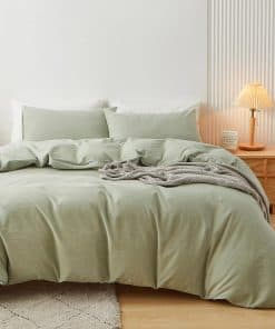 Premium Cotton Bedding: Made with 100% pure cotton, our washed cotton duvet cover has slightly wrinkled look, cozy like linen duvet cover set. It is breathable to keep you cool in hot summer and warm in the winter. What You Can Get: Available in XINMIANFANG washed cotton duvet cover set KING SIZE: 1 Duvet Cover 104″ x 90″ and 2 Pillowcases 20″ x 36″. Plain and Simple: Our linen feel duvet cover set can refresh your home deco with classic style. There is no need to worry about matching, this minimalist solid white duvet cover can match a variety of decoration styles. Suit for any occasions and seasons, will be a wonderful present for anyone you love as well. Convenient Details: XINMIANFANG washed cotton duvet cover has a hidden zipper closure and 4 corner ties to keep the duvet non-slip and ensure greater comfort at night. About the pillowcase, we believe design of envelope type will make sure the pillow easy to take out of. Satisfaction Service – This sage green washed cotton duvet cover is easy to care. Machine wash in cold water, gentle cycle, do not bleach, tumble dry at low heat. If unfortunately you are not satisfied with our linen-like texture duvet cover set, please feel free to contact us. Hope you enjoy purchasing in our store!