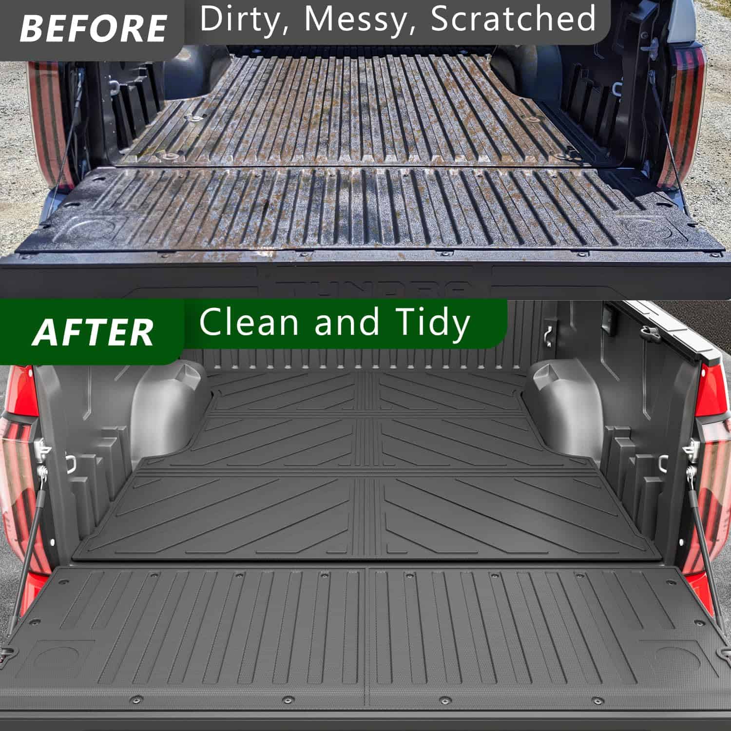 High-Quality Material: The truck bed mat and tailgate mat compatible with Tundra are made of high quality TPE material. The mats have good elasticity and wear resistance. Function: Compatible with Toyota Tundra truck mat and tailgate mat will help to protect your original bed from scratch. With unique design, they are perfect combination of fashion and practicality. Easy to Install: It is not difficult to install the bed mat and tailgate mat replacement for Toyota Tundra. The bed mat is foldable, so that you can easily store it. Tips: When you install the tailgate mat, you can align the original screw hole position and fix it with glue to make the mat substantial. Warranty: We provide you satisfactory service. If you have any installation problems, please contact us. We will provide you with after-sales service.