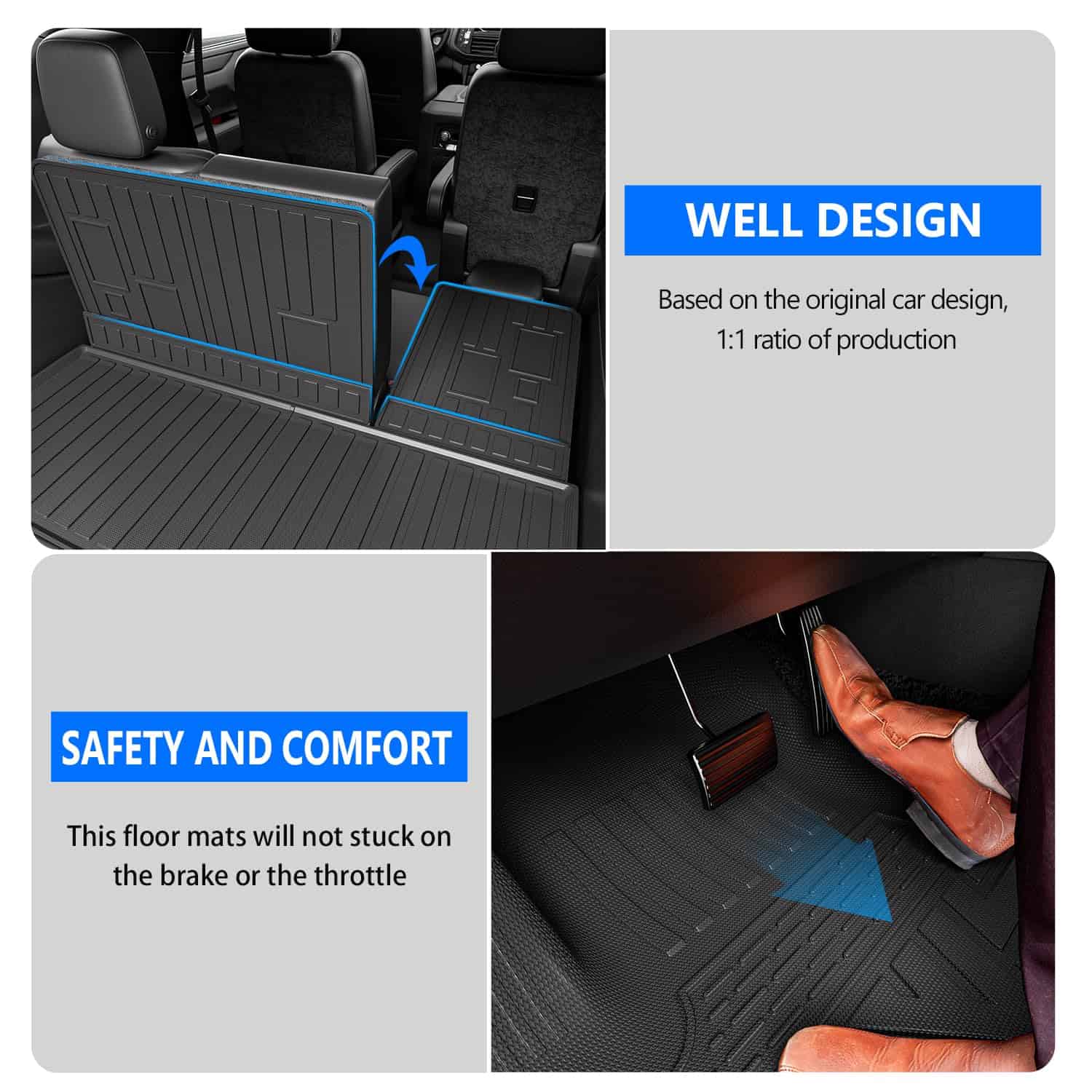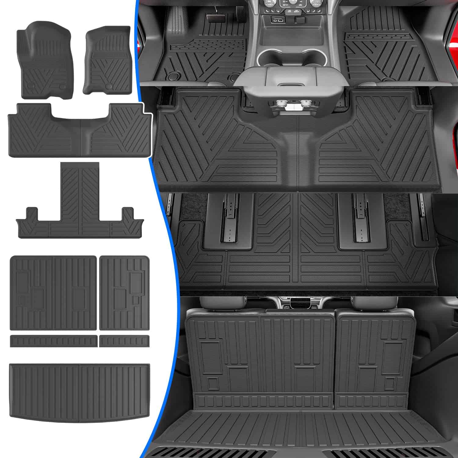 El tapete para el maletero, reposacabezas y tapetes para el suelo de xipoqix son la solución perfecta para proteger y mejorar el aspecto de su Chevy Tahoe o GMC Yukon de 7 plazas 2022 2023 2024 2025. Hechos de material TPE de alta calidad, estos tapetes son inodoros y ofrecen una excelente flexibilidad, resistencia al desgaste y resistencia al agua. Con una instalación fácil gracias al velcro incluido en los tapetes de reposacabezas, estos tapetes no solo protegen su automóvil de daños, sino que también le brindan un aspecto más elegante. El tapete para el suelo en la posición de conducción está diseñado para no afectar el uso normal del acelerador y del freno. En resumen, los tapetes de xipoqix son la elección perfecta para mantener su automóvil en las mejores condiciones y con un aspecto sofisticado. Además, nuestro equipo de atención al cliente está disponible para ayudarlo en caso de cualquier problema. ¡No dude en contactarnos!