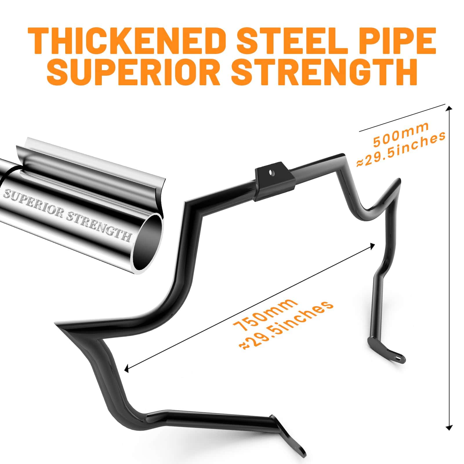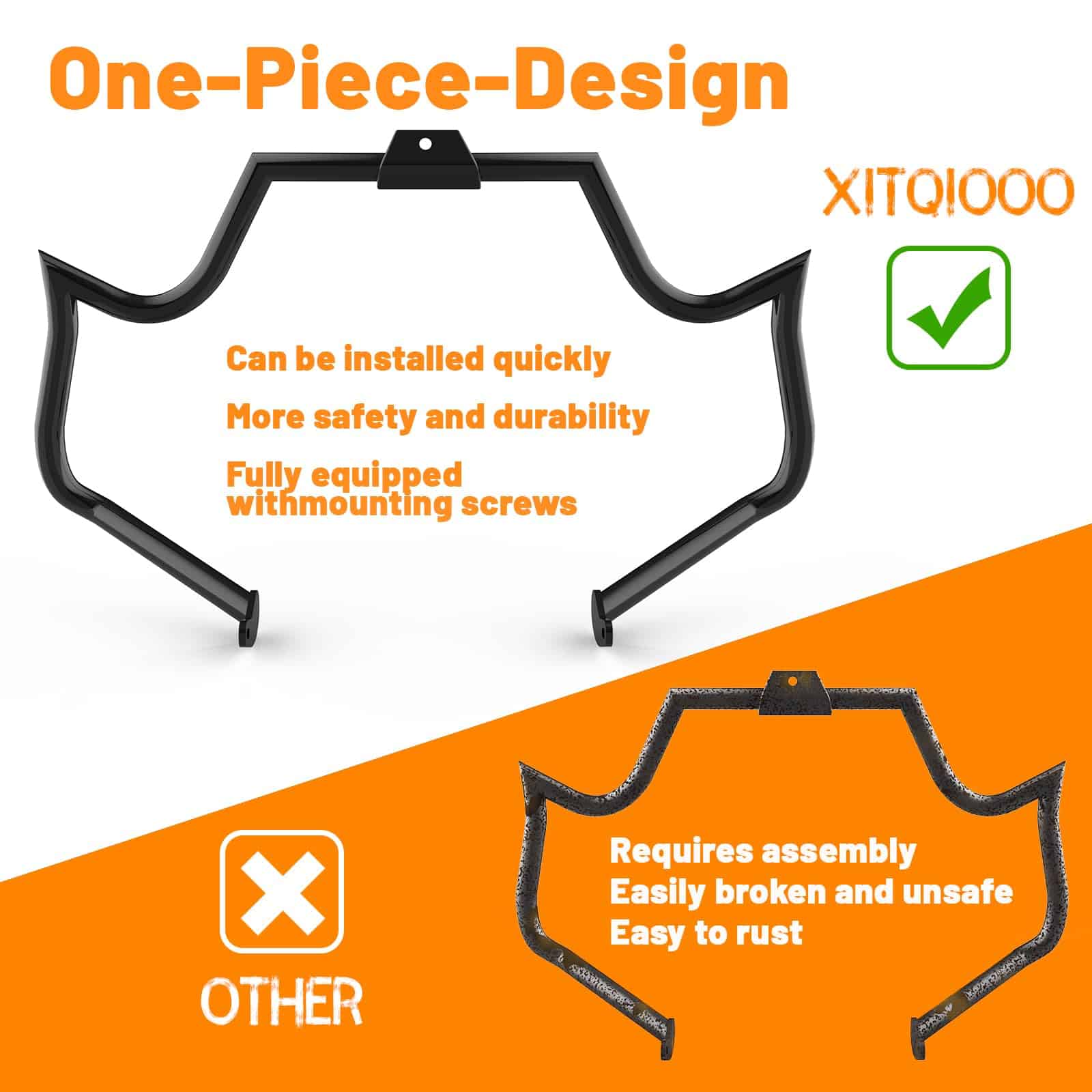 El protector de motor Xitqiooo para Harley Softail es hecho de acero resistente de 1-1/4 pulgadas, con todos los tornillos de acero inoxidable 304 para una construcción robusta y duradera. La barra de choque adopta un revestimiento de alta resistencia a la corrosión que ha pasado la prueba de rocío neutro de sal de 48 horas para evitar el óxido y la degradación debido a la exposición a los elementos. Proporciona la máxima protección al brindar soporte en caso de una caída inesperada de la motocicleta, evitando que choque contra el suelo y ofreciendo una protección sin igual contra peligros y impactos inesperados en la carretera. Fácil de instalar, solo coloque la barra de choque en la posición correspondiente de su motocicleta y apriete los tornillos. Se incluye el hardware necesario para una instalación rápida y sencilla.