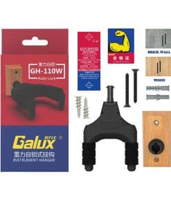 PARA TODOS LOS MUROS – Base de madera de haya súper decorativa para montaje en pared en paredes de ladrillos, pared de yeso, pernos o madera. Súper fácil y rápido de montar en segundos gracias a su diseño único de Empuje y Giro. AMPLIA ACOMODACIÓN – El soporte de gancho de pared para guitarra está diseñado para trabajar con todo tipo de cabezales, funcionando de forma universal con guitarras acústicas, eléctricas, bajos e incluso talones desiguales. AGARRES DE SEGURIDAD DE BLOQUEO AUTOMÁTICO – el soporte de pared para guitarra tiene un sistema de agarre automático, que se bloquea rápidamente cuando tu instrumento se coloca en el dispositivo. Los agarres de seguridad protegen tu instrumento de caerse. PROTEGE TU INSTRUMENTO – Espuma especialmente formulada alrededor de los brazos para asegurar que tu instrumento esté suavemente cuna y evitar cualquier rasguño o golpe cuando el instrumento se coloca en el yugo o se retira. TOCA MÁS – El instrumento es tan accesible colgado en la pared, justo en frente de ti, que te anima a tocar mucho más que tener el instrumento en estuches o guardado fuera de la vista. Soporte de Pared para Guitarra con Auto Bloqueo. – Este soporte de pared para guitarra bloquerá automáticamente tu guitarra al colocar el mástil de la guitarra en el brazo y se liberará automáticamente al levantar tu guitarra. Fácil de Instalar Gancho de Pared para Guitarra. – Puedes instalar fácilmente este gancho para guitarra en pocos pasos en la pared de concreto o pared de madera. Los kits de montaje en pared y una pegatina de posicionamiento (ayuda en la perforación de los agujeros para la instalación) están incluidos en el paquete. Soporte de Guitarra para Todas las Guitarras. – El Soporte para Guitarra tiene una capacidad de carga de 1 a 15 KG, y con yugo pivotante para adaptarse a diversas formas de cabeza, bueno para Guitarras Acústicas, Eléctricas, Clásicas, Bajos y también funciona para banjos, mandolinas y ukuleles. Soporte para Guitarra Protege tus Guitarras. – La cuna del yugo está cubierta con un caucho de alta densidad para proteger el acabado de tu guitarra.