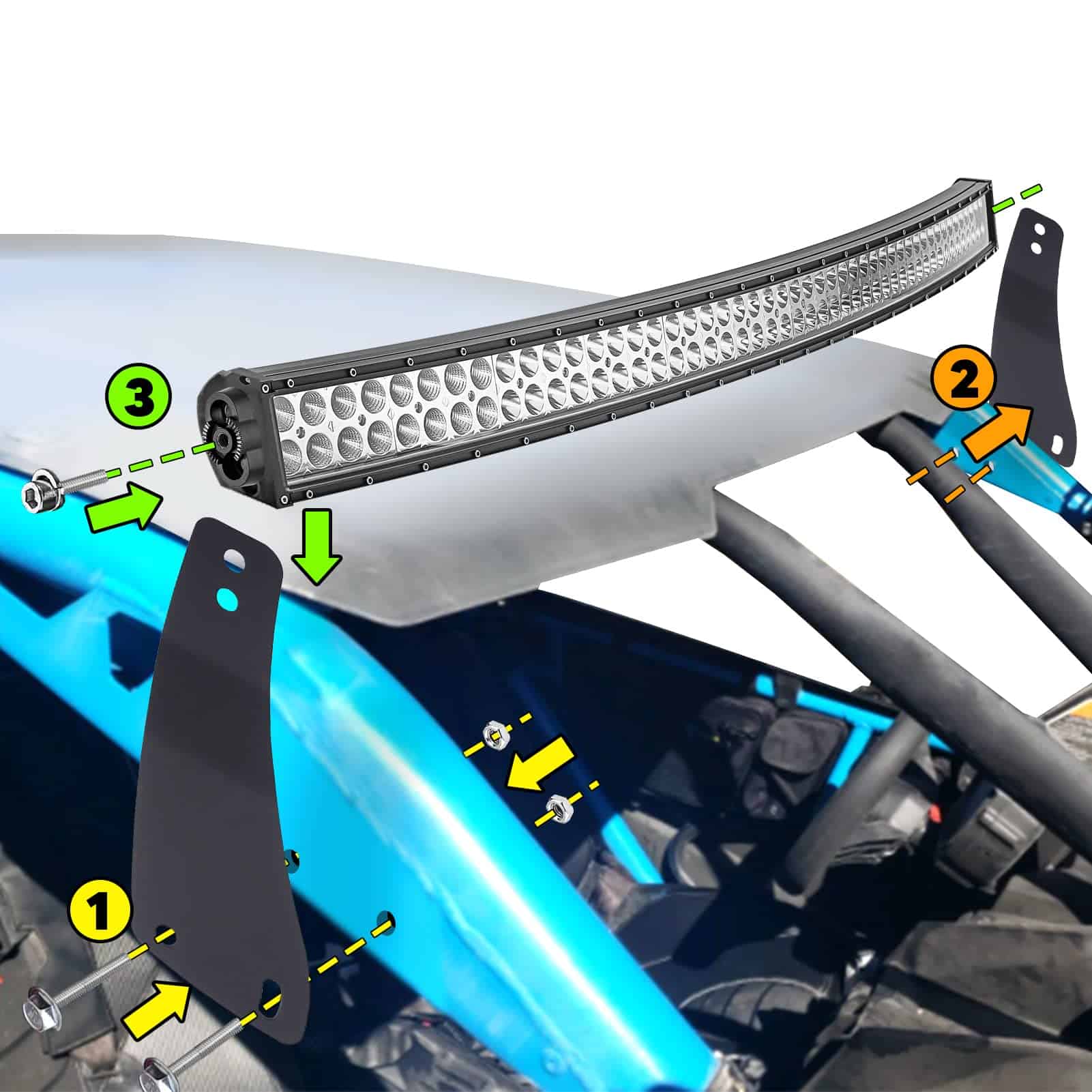 Permite agregar una barra de luz curva/recta de 50» encima de su parabrisas frente al techo.