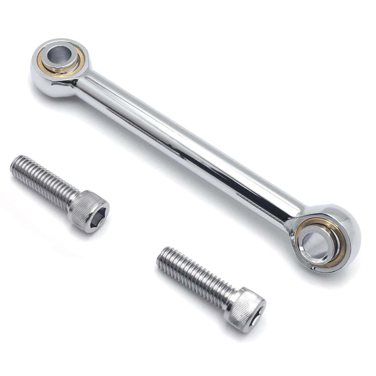 Agregue un estilo personalizado al frente con este brillante enlace estabilizador de montaje de motor cromado. Reemplace la Pieza OEM HD 16213-10. Ajuste: modelos Touring y Trike 2009 y posteriores.