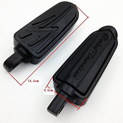 Ajuste: Se adapta a la mayoría de los modelos Harley Davidson 1984-2015 con soporte de montaje de posapiés masculino (excepto la posición del pasajero en los modelos XG posteriores a 2015, FXCW, FXCWC, FXS, FXSB, FXSBSE, XL883N de 2007 en adelante, XL1200N, XL1200T, XL1200V, XL1200X, XL883L de 2007-2010, modelso XL1200C posteriores a 2011, y modelos XR de 2008-2013). Material: aluminio billet de alta calidad y goma antideslizante. Dimensiones: Agujero de montaje de 10mm, aproximadamente 138mm (5.5 pulgadas) de longitud total. Compatible con varios modelos CVO Softail, CVO Street Glide, CVO Ultra Classic Electra Glide, Dyna, Electra Glide, Road King y otros modelos Dyna y Electra Glide mencionados.