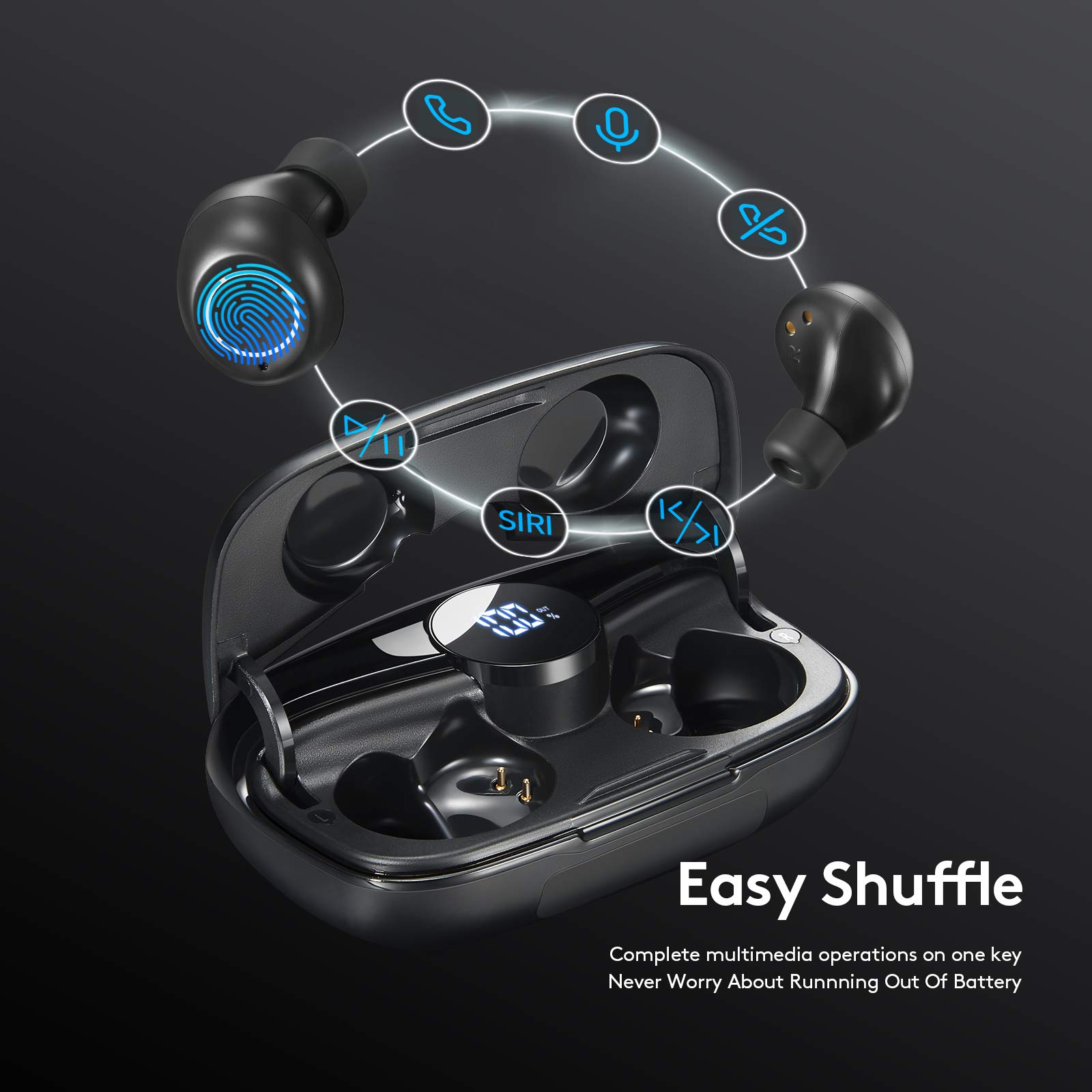 1. Sonido sin igual beneficie del último chip de audio Bluetooth 5.1 y diafragmas de titanio compuesto de 8 mm. Estos auriculares ofrecen un agudo excepcional, medios suaves y bajos potentes. Es el sonido más natural y realista. ¡Solo disfruta tu momento! 2. Emparejamiento de un paso, no necesitas habilidades para usar los auriculares. Saca 2 auriculares de la caja de carga, se conectarán automáticamente, luego entra en la configuración de Bluetooth del teléfono móvil para emparejar los auriculares. 3. Una carga dura una semana, obtén 4-5 horas de reproducción continua cuando los auriculares están completamente cargados y 90 horas adicionales desde la caja de carga. Llévalos contigo mientras viajas, haces ejercicio o viajas por el mundo. Nunca te preocupes por quedarte sin batería. 4. Conversaciones cara a cara, cancelación de ruido CVC8.0, eliminando varios ruidos de interferencia en el entorno. Puedes disfrutar de llamadas telefónicas cristalinas incluso en un entorno ruidoso, brindando el efecto de conversación cara a cara. Tu mejor compañero para conferencias. 5. Amplia compatibilidad, ampliamente compatible con iPhone, Samsung, teléfonos celulares Android, TV y otros dispositivos habilitados para Bluetooth. Nota: No utilices un cargador rápido que supere los 5V1A para evitar dañar la caja de carga.