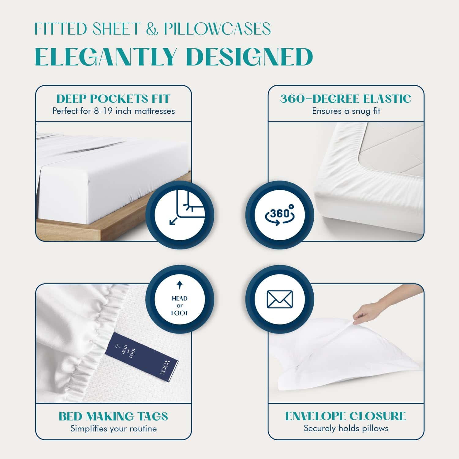 Suave y sedoso como pétalo de rosa para un toque divino: Hechas de 100% algodón egipcio, estas sábanas de cama queen son increíblemente suaves y sedosas al tacto. El tejido de satén agrega una textura lustrosa y suave para elevar la apariencia y sensación del juego de sábanas queen de algodón egipcio. Además, nuestro juego de sábanas queen egipcio están validados por OEKO-TEX para estar libres de sustancias dañinas, haciéndolos ideales tanto para niños como para adultos. Gruesas y pesadas sábanas de hotel de 7 estrellas: El juego de sábanas de algodón egipcio 100% de XOOX Linen queen size es notablemente denso y pesado, lo que las hace más lujosas y premium. Estas sábanas queen de algodón egipcio están a la par con la ropa de cama de hotel de 7 estrellas, como The Ritz Carlton o The Plaza. Incluye un completo y bien ajustado juego de sábanas de 4 piezas: El Juego de Sábanas de Algodón Egipcio Queen incluye 4 piezas – 1 sábana plana (90′ x 102′), 1 sábana ajustable (60′ x 80′ + 17′), ¡Y 2 fundas de almohada tamaño estándar / queen (21′ x 32′). La sábana ajustable elástica cuenta con un bolsillo extra profundo de 17 pulgadas para acomodar fácilmente colchones regulares y altos de hasta 19 pulgadas. Las fundas de almohada tienen un cierre abierto para que las almohadas más grandes puedan deslizarse fácilmente. Dura décadas, resistente a las píldoras y decoloración: Mercerizadas hasta el último hilo, nuestras sábanas de algodón egipcio queen conservan su color brillante en el lavado y resisten naturalmente la formación de bolitas y la decoloración. Si se cuidan correctamente, nuestras sábanas de algodón egipcio queen size pueden durar años. Lavar a máquina en caliente. Lavar por separado en ciclo suave. Secar a baja temperatura. Por favor, ten en cuenta que las sábanas de algodón egipcio se arrugan de forma natural en el lavado. Plánchalas ligeramente después de sacarlas de la secadora para obtener una apariencia lisa.