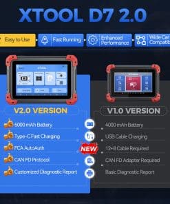 El Escáner XTOOL D7 es una herramienta de diagnóstico integral de sistemas completos diseñada para un análisis profundo del vehículo. Ofrece diagnósticos precisos en todos los sistemas automotrices, ofreciendo características como flujos de datos en vivo, recuperación de imagen congelada, pruebas activas y la capacidad de graficar hasta 8 PID simultáneamente. Ya seas un mecánico profesional o un entusiasta de bricolaje, el escáner auto XTOOL D7 te ayuda a mantener tu auto en óptimas condiciones con diagnósticos confiables y precisos. Este escáner OBD XTOOL D7 ofrece funciones de grado profesional a un precio intermedio. Más allá de sus 36 funciones de acceso rápido como Reinicio de Aceite, Reinicio de Freno de Estacionamiento Electrónico, SAS, Sangrado de ABS, Reinicio del Sensor del Cigüeñal y Reinicio del Cuerpo del Acelerador, este escáner OBD2 ofrece restablecimientos de sistemas específicos que pueden ayudar a eliminar códigos de falla y restaurar el rendimiento óptimo del vehículo. No todas las funciones son compatibles con cada vehículo. Envíanos tu VIN y la función deseada para verificar la compatibilidad. El XTOOL D7 es un escáner OBD completo que cubre 150+ modelos y 10,000+ vehículos, diseñado para solucionar rápidamente problemas para el 99% de los automóviles de Estados Unidos, Europa y Asia. Con actualizaciones y optimizaciones frecuentes, permite que el escáner de códigos D7 amplíe la cobertura de vehículos para satisfacer tus necesidades en constante evolución. Su menú multilingüe admite 16 idiomas, incluido el español, lo que facilita su uso para los mecánicos de autos en todo el mundo sin barreras idiomáticas. Nota: Para autorizar nuevas actualizaciones de idiomas, envíanos amablemente el número de serie del dispositivo antes de cambiar el idioma del menú.