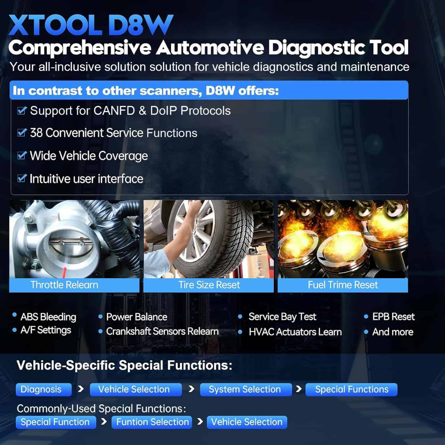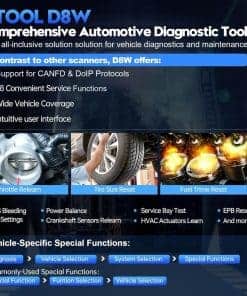 2. Versión Actualizada de XTOOL D8BT Escáner OBD2: El escáner de automóvil inalámbrico XTOOL D8W cuenta con mejoras de hardware para proporcionar un rendimiento óptimo, incluyendo Android 10.0, memoria 4G+64G, comunicación WiFi que reemplaza la limitada conexión BT, etc. para garantizar una operación más suave y más inteligente. El escáner de diagnóstico de automóviles XTOOL D8W te permite detectar rápidamente fallos en el vehículo y realizar una amplia gama de tareas de mantenimiento, incluyendo 38+ Resets, Escaneo de Sistema Completo, 4000+ Pruebas Activas, Mapeo de Topología, Codificación ECU, Guía V.A.G, PMI, FCA/CANFD/DoIP Escaneo Pre/Post, Aprendizaje de Cigüeñal, Informe de Diagnóstico 2.0 y más. brindando diagnósticos de nivel concesionario con capacidades avanzadas, se destaca como una opción superior en este rango de precios.