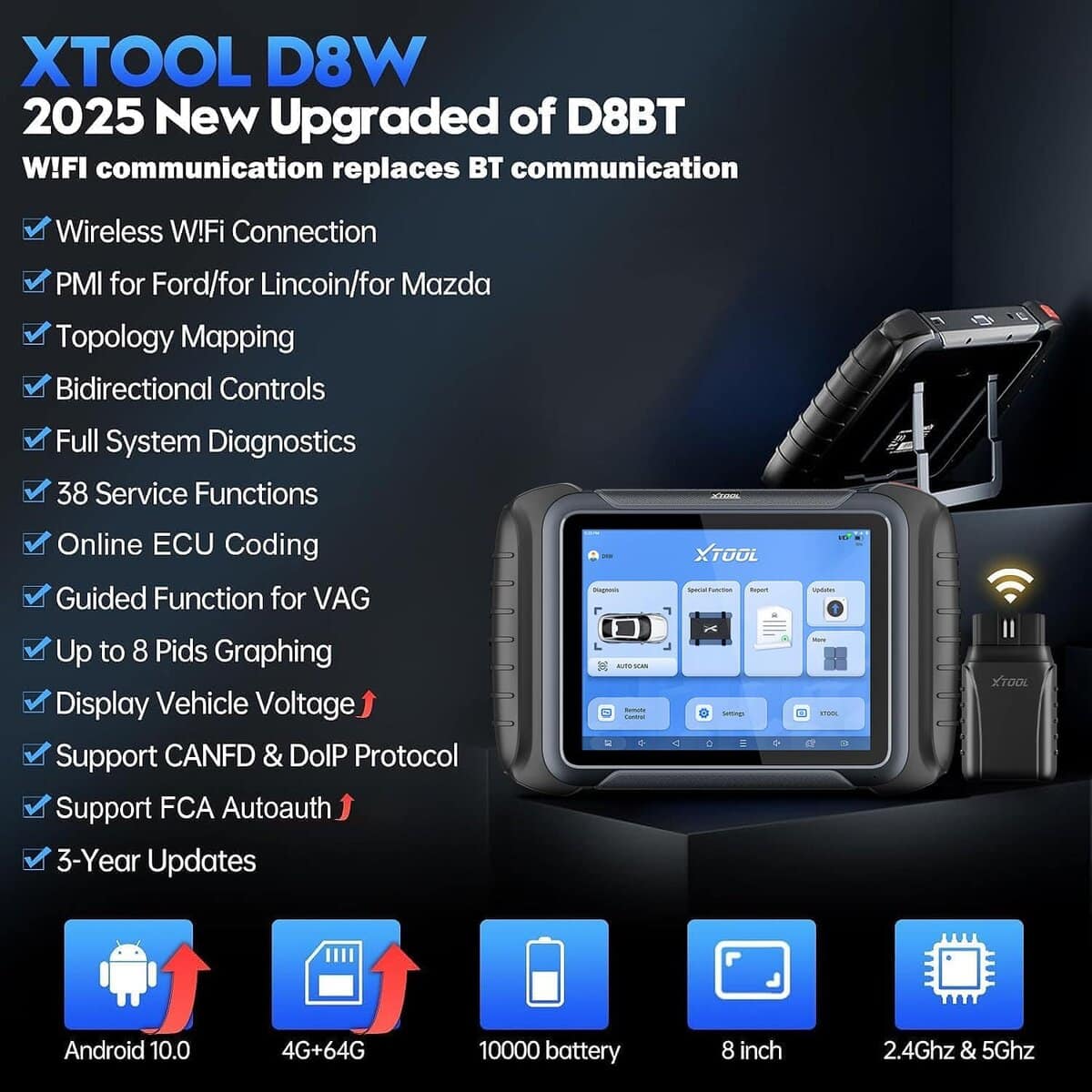 1. XTOOL D8W V2.0 Nueva Emocionante Actualización FCA AutoAuth: El XTOOL D8W V2.0 Escáner OBD2 Inalámbrico con Codificación ECU 2025 ahora incluye FCA AutoAuth, mejorando la diagnóstico para vehículos FCA (para Chrysler, para Jeep, para Dodge 2018+, para Fiat 2017+) sin restricciones de gateway. Esta emocionante actualización asegura un acceso a los sistemas del vehículo sin inconvenientes, permitiendo reparaciones precisas y eficientes. Con FCA AutoAuth, ahora puedes realizar fácilmente diagnósticos avanzados en vehículos FCA, mejorando la experiencia de servicio en general. ¡No te pierdas esta función esencial, actualiza tus capacidades de diagnóstico con el XTOOL D8W V2.0 Escáner OBD2 Bidireccional con mapeo de topología hoy!