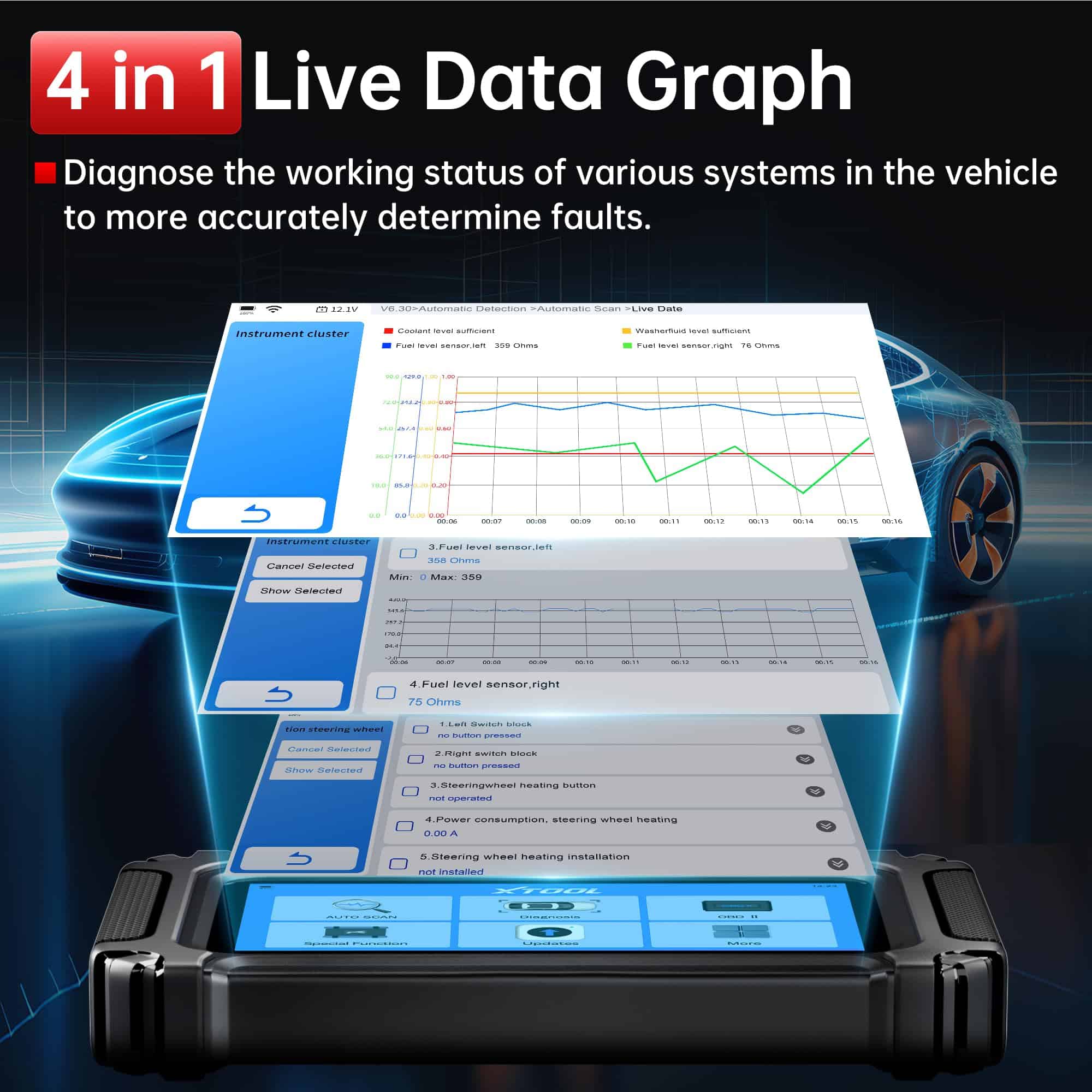 1. XTOOL IP500 para GM Escáner OBD2 ofrece un acceso detallado al sistema y diagnósticos precisos que las herramientas generales no pueden igualar. Con esta herramienta, los propietarios de vehículos GM ya no necesitan preocuparse por problemas de compatibilidad. Este escáner OBD2 para GM XTOOL IP500 proporciona diagnósticos de sistema completo, una pantalla táctil de alta definición de 5», y 25 funciones únicas para una experiencia de diagnóstico perfecta. También incluye otras características como 10 Funciones Completa de OBD2, Control Completo Bi-direccional, Diagnóstico Completo de Sistema, Gráfico de Datos en Vivo Multi en Uno, Auto VIN, Leer Información de la ECU, Leer Marcos Congelados, Flujos de Datos, Actualización de por Vida, etc. 2. 25 Funciones Exclusivas Adaptadas para Propietarios de GM/Chevrolet El escáner OBD2 XTOOL IP500 te ofrece 25 funciones únicas diseñadas para vehículos GM para simplificar el mantenimiento y empoderar a los entusiastas del bricolaje. Las funciones incluyen Reinicio de EPB, Reinicio de SAS, Reinicio de BMS, Reinicio de Acelerador, Sangrado de ABS, Codificación de Inyectores, Emparejamiento de Caja de Cambios, Ajuste de Suspensión, Cambio de Idioma, Calibración de Asiento, Ajuste de Faros, Reinicio de A/F, Reaprendizaje de A/A, Adaptación de Embrague, Reinicio de Tamaño de Llantas, Balance de Potencia, Reaprendizaje de Sensor de Cigüeñal, etc. Usa esta herramienta de diagnóstico profesional para resolver problemas comunes como reinicio de acelerador, adaptación de embrague o calibración de asiento en tu garaje mientras ahorras cientos de dólares en tarifas de concesionarios. 3. Control Bi-direccional – Tu Atajo Inteligente hacia Diagnósticos Eficientes Di adiós a las inspecciones manuales tediosas con el control bi-direccional del escáner OBD2 XTOOL IP500 para vehículos GM. Diseñado tanto para mecánicos como entusiastas del bricolaje, esta función te permite probar activamente sistemas críticos como iluminación, limpiaparabrisas y actuadores de lámparas directamente a través del escáner. No más juegos de adivinanzas, simula operaciones reales, verifica las respuestas de los componentes al instante y aisla fallas con precisión. Ya sea que estés solucionando problemas eléctricos intermitentes o validando reparaciones, este escáner XTOOL IP500 convierte horas de seguimiento de circuitos en ideas dirigidas y precisas. 4. Diagnóstico completo de sistemas a nivel de OBD2 con el escáner XTOOL IP500 para GM Diseñado para vehículos GM y propietarios que valoran la claridad en el cuidado automotor, el escáner OBD2 XTOOL IP500 para GM proporciona diagnósticos completos en los sistemas del vehículo – desde el rendimiento del motor hasta el comportamiento de la transmisión, la funcionalidad del ABS hasta la preparación de la bolsa de aire. Esta herramienta intuitiva no solo determina con precisión los DTCs, interpreta el lenguaje de tu vehículo, identifica fuentes de problemas y puede ser utilizada para monitorear y reportar el estado operativo de los sistemas del vehículo. También viene equipado con funciones completas de OBD2 que pueden leer DTCs, Limpiar DTCs, Datos en Vivo, Marco Congelado, Información del Vehículo, Módulos Presentes, etc. 5. Exploración Automática en Profundidad – Gráfico de Datos en Vivo Multi en Uno: Este escáner OBD2 XTOOL IP500 puede ofrecer un análisis automático en profundidad de todos los sistemas del vehículo GM y monitorizar simultáneamente múltiples tipos de datos en tiempo real que te permiten ver las correlaciones de los datos claramente e intuitivamente entre varios sistemas y analizar en profundidad la condición operativa global del vehículo, los problemas ocultos y los riesgos potenciales de fallas serán detectados para garantizar que tu vehículo esté en un estado de funcionamiento normal. 6. Experiencia de Usuario Perfecta Evita el retardo, la respuesta lenta o las conexiones interrumpidas. La configuración de hardware robusta de este escáner XTOOL IP500 para GM ofrece una experiencia de usuario fluida. Equipado con un procesador de doble núcleo de 1.2GHz que proporciona capacidades suficientes de procesamiento de datos. La pantalla táctil de 5.45 pulgadas, resolución de 1440 720, presentará el estado de funcionamiento del vehículo de manera clara e intuitiva, batería incorporada de 3150mAh, interfaz Type-C (cargador no incluido), memoria de 32GB y admite memoria de 128GB (no incluida). Ya sea tratando con sistemas de vehículos complejos o intercambio de datos, esta herramienta de diagnóstico IP500 para GM puede manejarlos con facilidad. 7. Compatibilidad y Actualización Gratuita Este escáner OBD2 XTOOL IP500 es compatible con el 99% de los modelos de Buick, Chevrolet, Cadillac, GMC. Y ofrece una función gratuita de actualización vía Wi-Fi de por vida para que obtengas los datos y características de los modelos de vehículos más recientes de forma gratuita. Ten en cuenta: algunos modelos pueden no ser compatibles, confirma con nuestro soporte técnico antes de comprar.