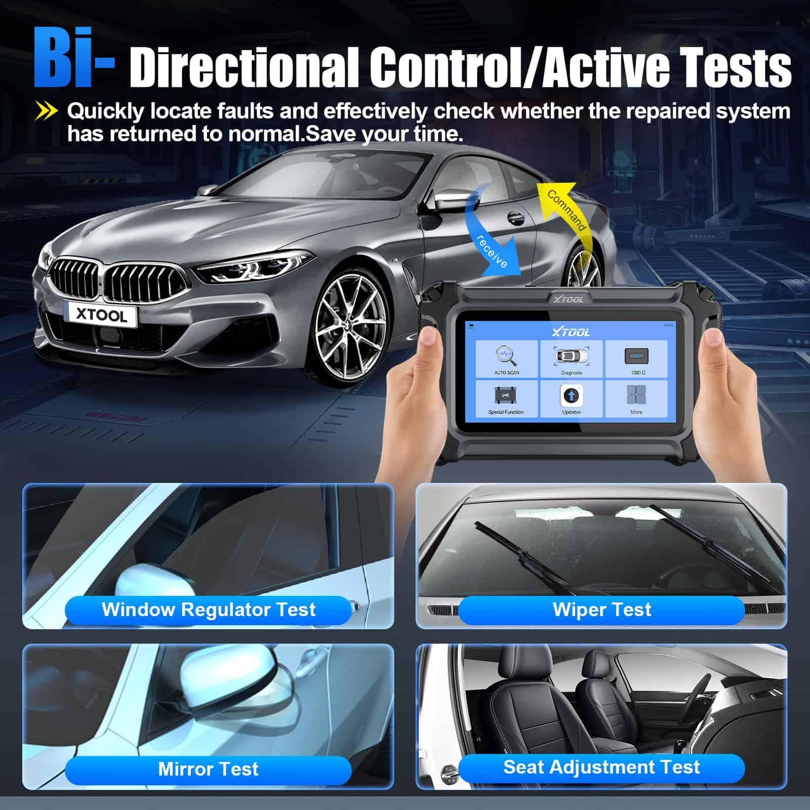 5. Control Bidireccional-Diagnostique con Precisión los Fallos : La función de control bidireccional/pruebas activas de XTOOL IP500 para BMW admite pruebas de control activas en los sistemas o componentes del vehículo para determinar si los actuadores están funcionando correctamente. Ya no tienes que pasar mucho tiempo comprobando los complejos sistemas de los autos BMW, simplemente utilizando algunas de las pruebas de acción más comunes, como la prueba del sistema de iluminación, la prueba del actuador de la lámpara, las pruebas de limpiaparabrisas, etc., para ayudarte a identificar de manera rápida y precisa los componentes defectuosos. Mejora la eficiencia del trabajo de mantenimiento del vehículo.