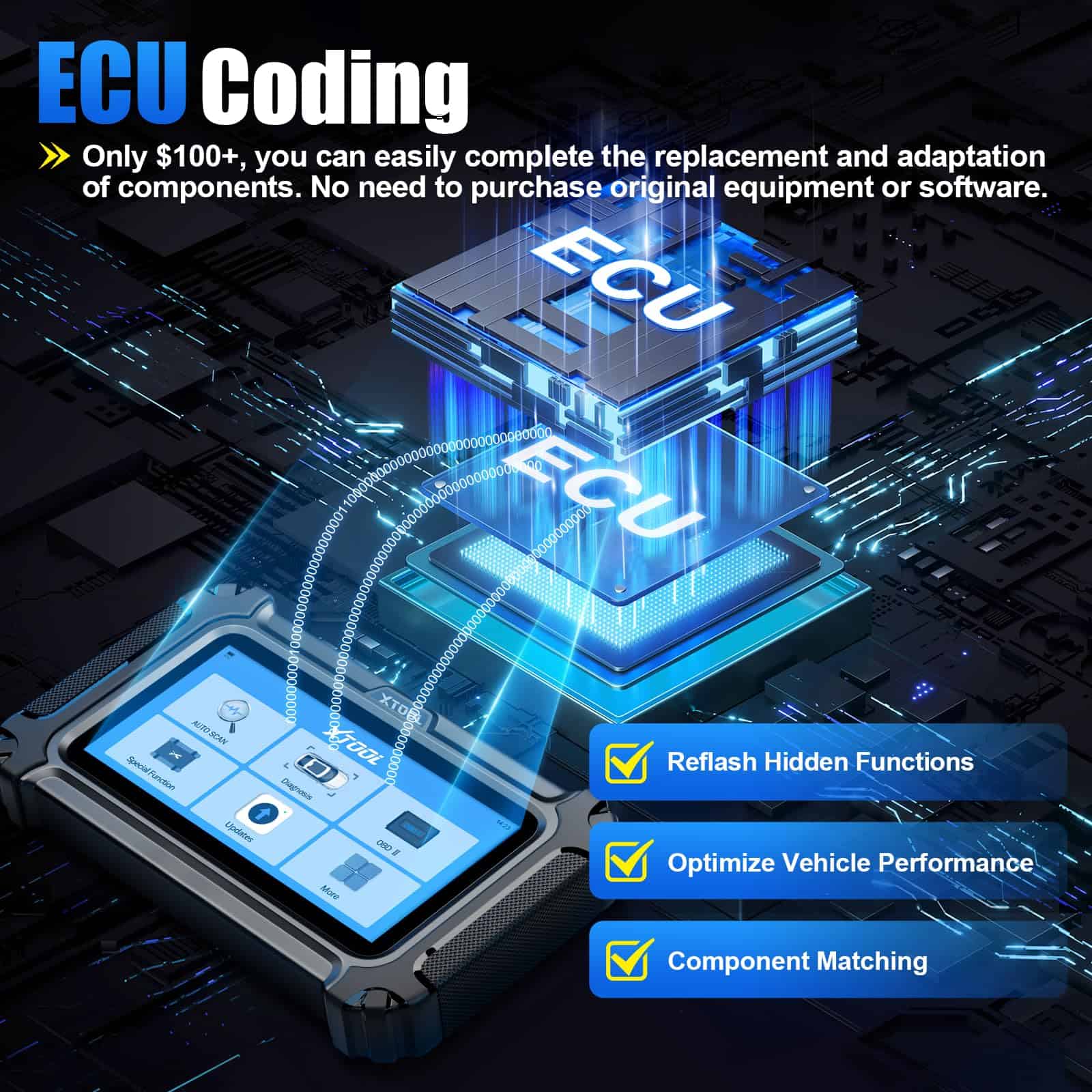4. Codificación Inteligente de ECU para Mejorar su Experiencia de Conducción XTOOL IP500 para BMW, una herramienta de escaneo OBD2 específicamente diseñada para vehículos BMW, viene con una función avanzada de Codificación de ECU. La función le permite restablecer los datos de la ECU y configurar ajustes para componentes reemplazados, optimizando significativamente el rendimiento de los vehículos BMW. Además, ofrece la flexibilidad de personalizar ciertas funciones y reactivar funciones ocultas. Por ejemplo, los usuarios pueden optimizar la capacidad de potencia del vehículo y personalizar los ajustes de iluminación. Todas estas capacidades trabajan juntas para elevar la experiencia de conducción general.