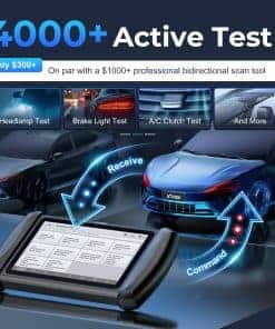 2. 4000+ Pruebas Activas para Diagnósticos de Precisión: Ejecute control bidireccional avanzado en componentes críticos como bombas ABS, embragues de A/C, ventiladores de refrigeración, limpiaparabrisas, bocinas y más. Con más de 4000 pruebas, el escáner OBD2 bidireccional IP819 le ayuda a detectar problemas un 50% más rápido y ahorrar un valioso tiempo de diagnóstico. (La compatibilidad varía según el modelo y año, verificar antes de la compra.).