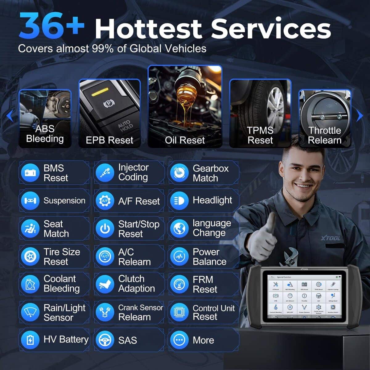 3. 36+ Servicios Esenciales en una Herramienta: Desde Restablecimiento de Aceite y Sangrado ABS hasta Restablecimiento de TPMS y Codificación de Inyectores, además de restablecimiento de EPB, restablecimiento de BMS, batería HV, balance de potencia, SAS, A/C relearn, acelerador, faro, suspensión, Codificación de Inyectores, Coincidencia de Caja de Cambios, Restablecimiento de Tamaño de Neumáticos, Aprender Sensor de Cigüeñal, Sangrado de Refrigerante y más, el escáner bidireccional IP819 cubre 36+ servicios para abordar una amplia gama de reparaciones. Ahorre en costosas facturas de reparación y maneje tareas complejas con facilidad, ideal para técnicos y bricoladores por igual. ¡Salta el taller de reparación, ahorra $500 al año!