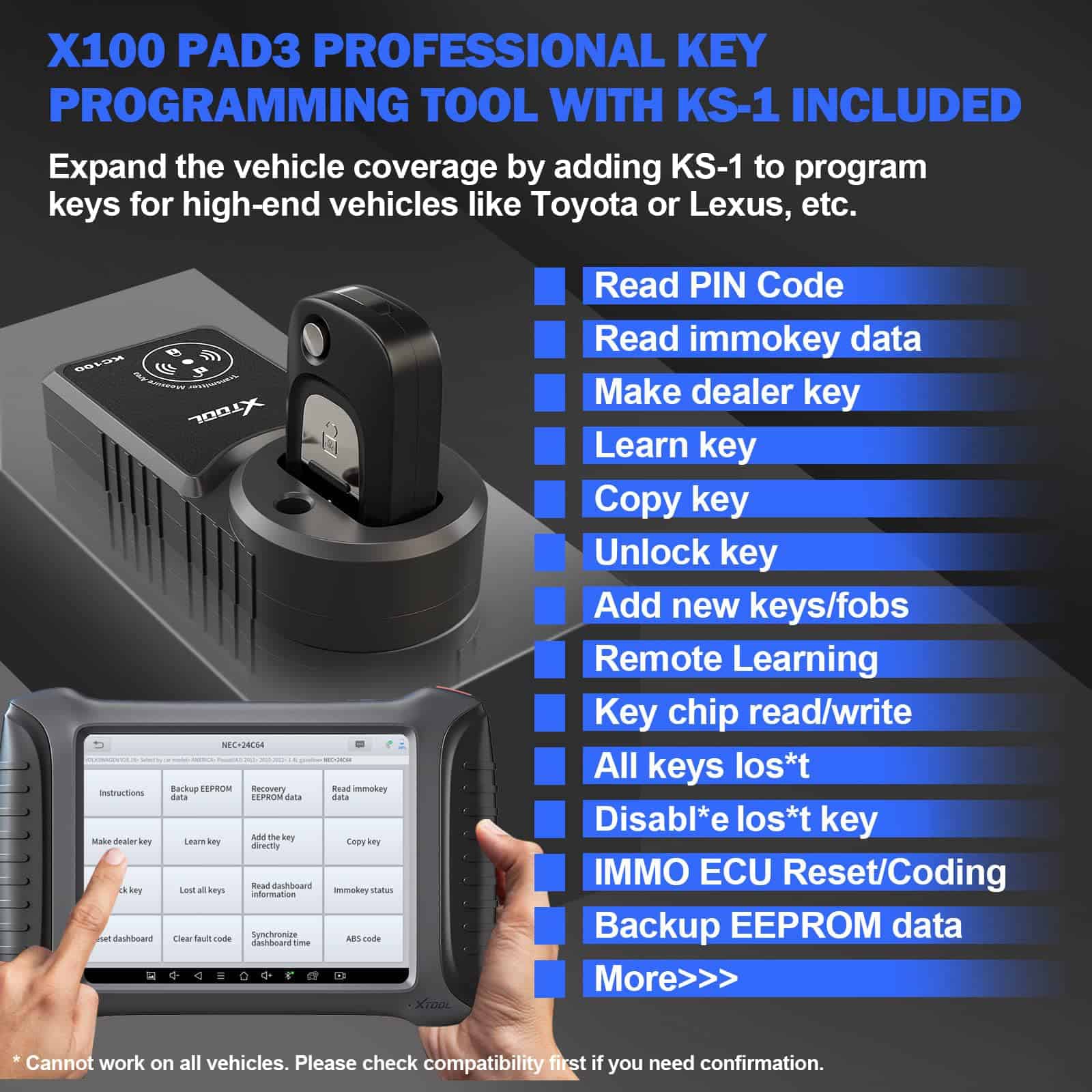 Herramienta de programación de llaves y escáner de diagnóstico todo en uno X100 PAD3 es la elección perfecta para talleres de reparación de automóviles y mecánicos profesionales que requieren tanto capacidad de programación de llaves como funciones de diagnóstico.