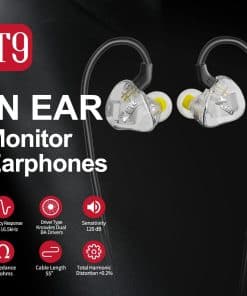 Con drivers de armadura balanceada doble, los Monitores In-Ear T9 de Xvive están diseñados para ofrecer un rendimiento de audio que rivaliza con un conjunto personalizado de auriculares, pero a un precio mucho más atractivo para músicos y amantes de la música. La intersección unificada ha sido diseñada para asegurar que cada driver sólo reciba las frecuencias que es capaz de reproducir con precisión. El driver de baja frecuencia proporciona un potente medio/bajo hasta 20 Hz, mientras que el micro tweeter sintonizado a medida y con puerto personalizado suministra frecuencias altas de hasta 16.5 kHz, casi el rango completo que los oídos humanos son capaces de escuchar. El T9 ofrece un sonido claro, natural y no exagerado que asegura que los músicos puedan confiar en sus mezclas y grabaciones. Los audiófilos apreciarán el espacio adicional para acomodar ajustes personalizados de EQ desde la fuente original, permitiéndote aumentar los graves o ajustar más agudos sin tener que preocuparte por la distorsión. El cable desmontable de 3.9′ se conecta a una amplia gama de equipos de audio y dispositivos móviles a través de un conector TRS de 3.5mm común; también se proporciona un adaptador de 1/4″.