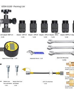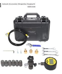 Introducción del Kit de Carga de Nitrógeno y Prueba de Presión del Acumulador Hidráulico XZT GK-01SD: Nuestro kit de carga de nitrógeno y prueba de presión para acumulador hidráulico es apto para la mayoría de acumuladores. Con una apariencia delicada y fácil de usar. Este kit contiene: — Manómetro digital: 0~10000PSI 1 — Siete tipos de adaptadores: UNF7/8—– 1 UNF5/8—– 1 UNF5/16—– 1 UNF1/2—– 1 G1/4(BSP1/4)—– 1 M14 1.5—– 1 M28 1.5—– 1 este adaptador ya está conectado al cuerpo de la válvula — La longitud de la manguera de gas es de 10FT/ 3m