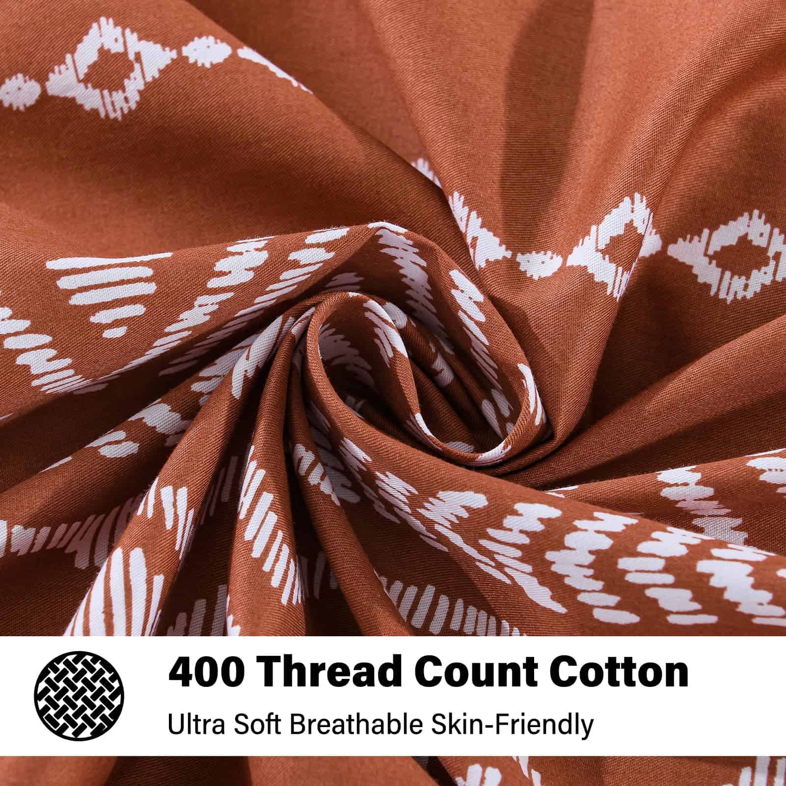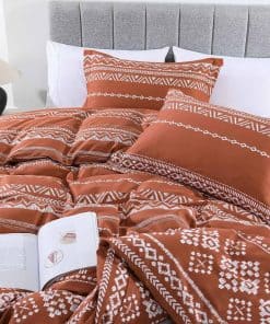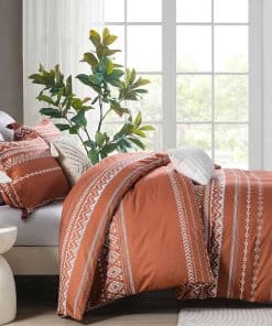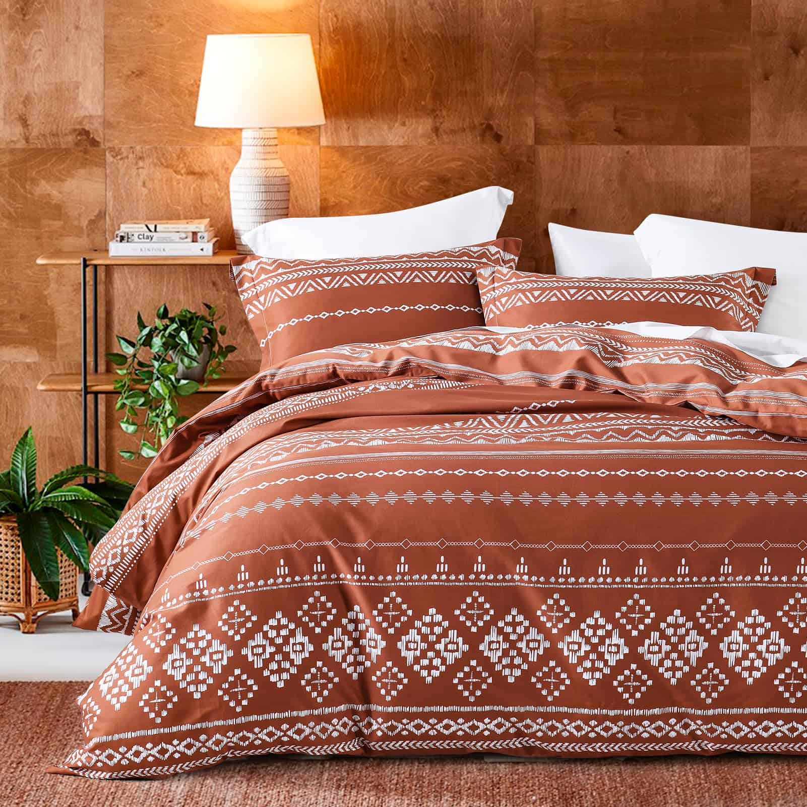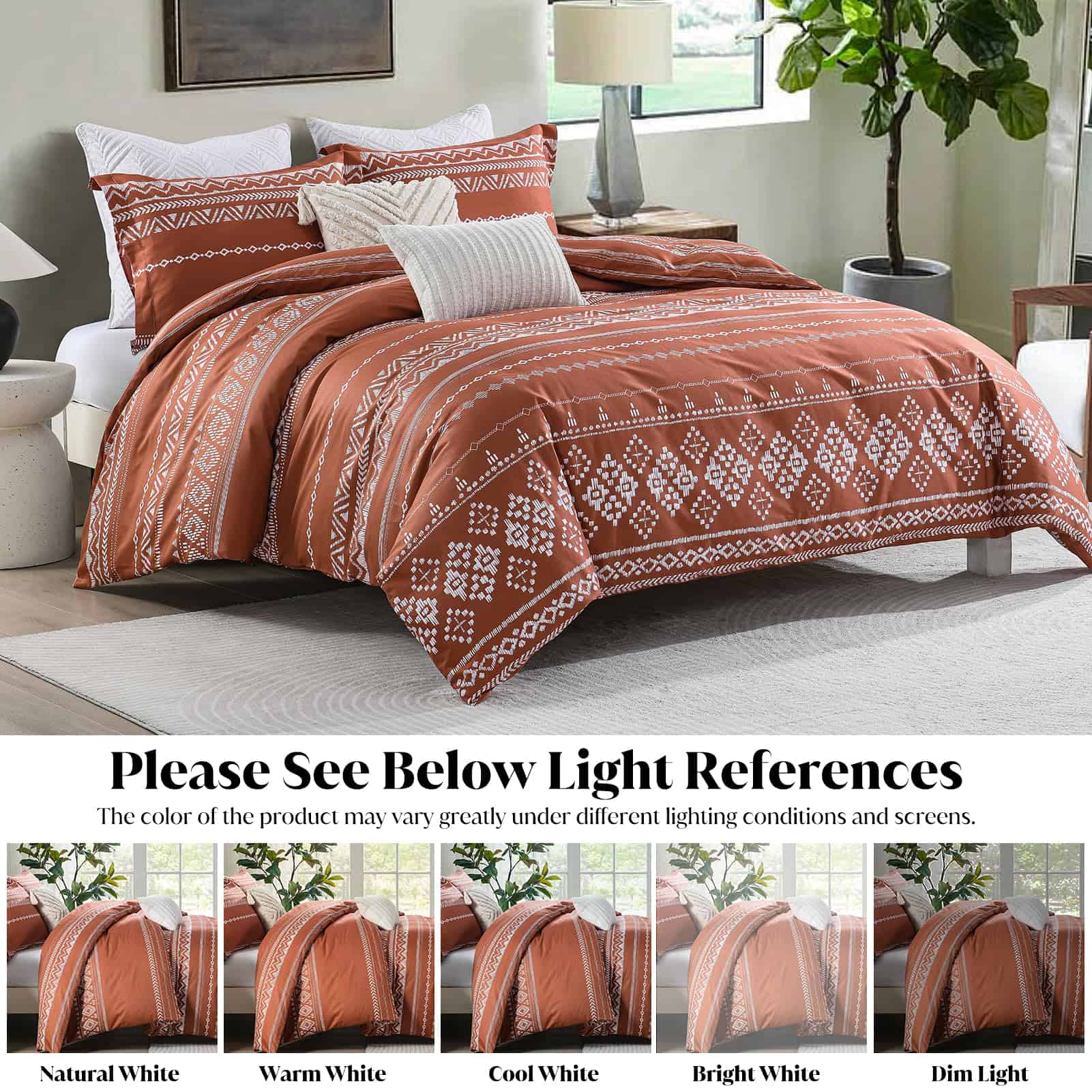 1. Tamaño King & Paquete Incluido Y-PLWOMEN te trae un lujoso juego de ropa de cama de algodón de 3 piezas: 1 funda nórdica tamaño king (104″ x 90″), 2 fundas de almohada (20″x 36″). Nota: El relleno de la funda nórdica y las almohadas no están incluidos. 2. Algodón Ultra Suave & Mejor Sueño Material certificado Oeko-Tex Standard 100. La funda nórdica king está hecha de 100% algodón. La artesanía prelavada hace que la tela tenga una excelente suavidad, no se desvanezca fácilmente, no tenga olor. El set de funda nórdica queen es adecuado para todo el año, es suave, cómodo y transpirable. 3. Diseño & Regalo La exquisita funda nórdica de rayas aztecas color naranja quemado hace eco con tu cálida habitación, hermosa y generosa, brindándote una experiencia visual diferente, disfruta de tu vida. Es una buena opción para tus amigos y familiares. 4. Cierre de Cremallera & 8 Lazos de Esquina El conveniente cierre de cremallera oculto sin complicaciones hace que sea fácil insertar y quitar tu relleno en la funda nórdica, los ocho lazos de esquina mantienen el relleno en su lugar. Déjate dormir pacífica y cómodamente toda la noche. 5. Instrucciones de Cuidado La colección de funda nórdica king de Y-PLWOMEN es fácil de cuidar, por favor no la laves con alta frecuencia. Lavable a máquina a menos de 60ºC. No usar lejía. Secar en secadora con ciclo suave y sin calor. CONSEJOS: Lavar del revés, es mejor secar al natural