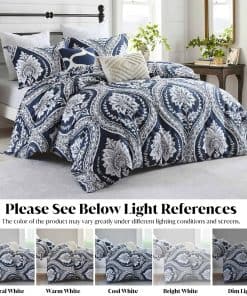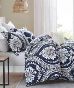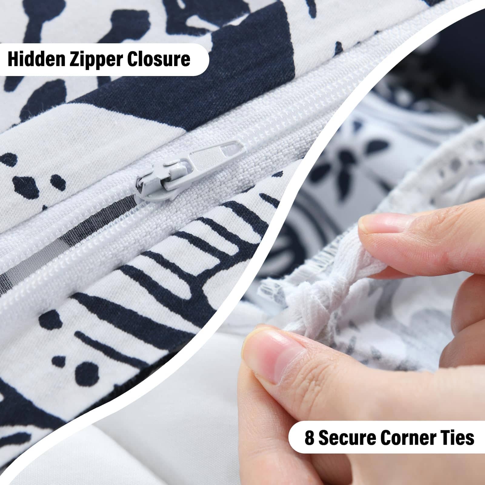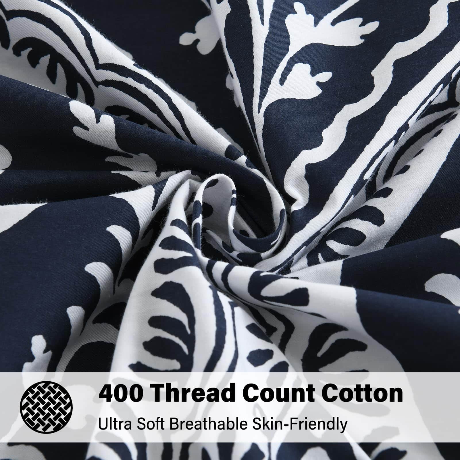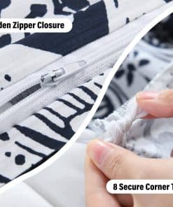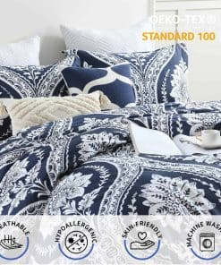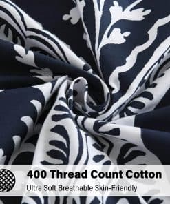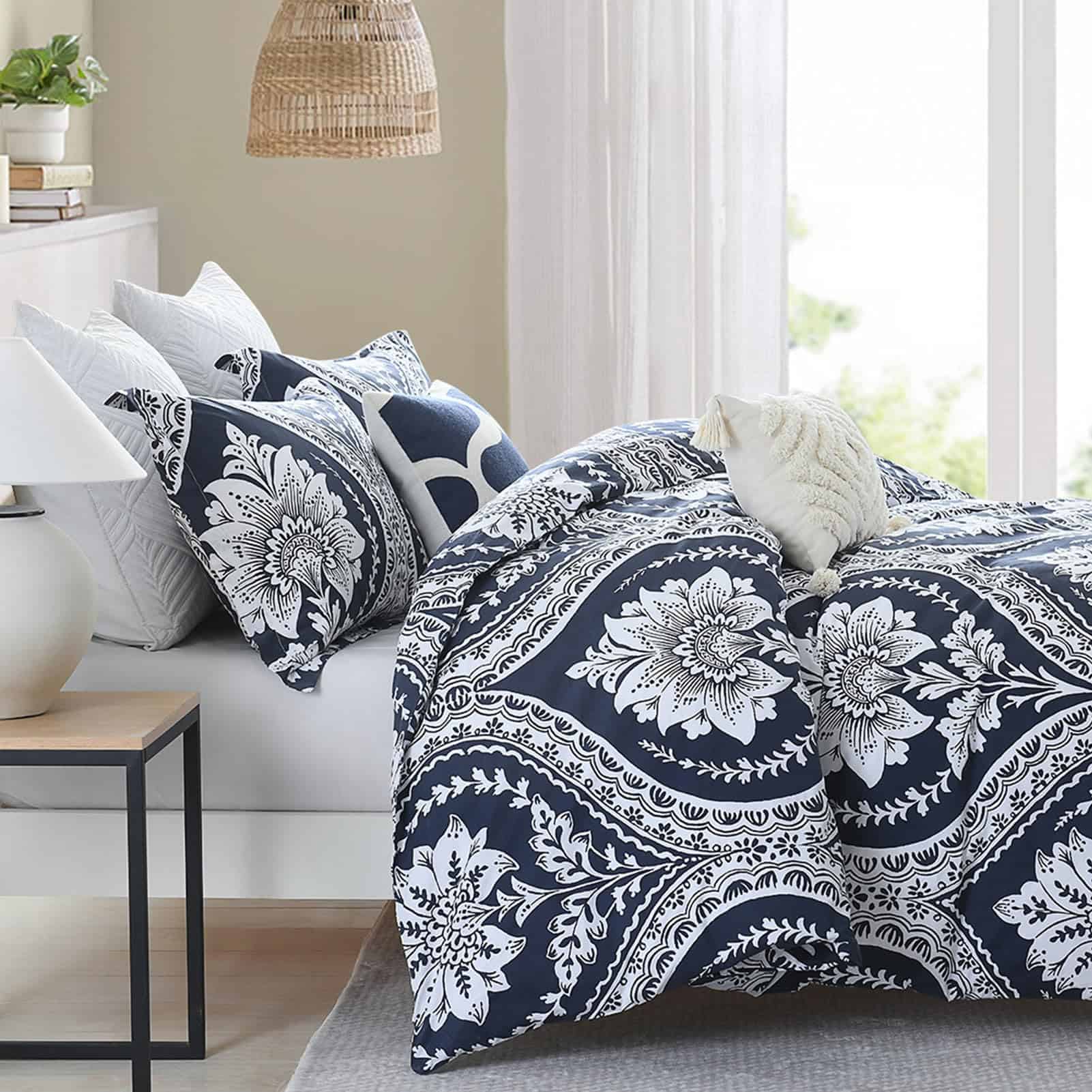 1. Juego de funda nórdica azul queen Y-PLWOMEN hecho de tejido de algodón de tejido percal, esta funda nórdica queen con estampado damasco es transpirable y cómoda, lo que le proporcionará un confort impredecible y el mejor sueño. El método de prelavado hace que el juego de funda nórdica queen sea aún más suave. 2. Estándar OEKO-TEX Esta funda nórdica de paisley con cierre de cremallera tiene producción en fábrica con estándar OEKO-TEX 100, el juego de funda nórdica azul queen tamaño queen adopta una tecnología ambiental de impresión y teñido reactivo que hace que los colores sean más reales, más firmes y no se desvanezcan fácilmente, sin olores, asegurando que los patrones se mantengan nuevos y vivos durante décadas. 3. HERMOSO PATRÓN DE PAISLEY: ¡Este juego de funda nórdica de paisley es hermoso! ¡El impresionante patrón floral de paisley es impresionante! Los colores son brillantes y es muy suave. El color perfecto que estabas buscando para cubrir tu edredón. Es un aspecto bonito que coincide con la decoración de tu dormitorio. 4. 8 Lazos de Esquina y Cierre con Cremallera La funda nórdica floral queen tiene 8 lazos de esquina y un cierre de cremallera oculto aseguran que su funda nórdica se ajuste de manera ultra precisa y evite que se resbale. El cierre de cremallera oculto facilita la colocación y extracción de la funda nórdica azul queen tamaño queen y apunta a un uso más duradero que el cierre de botones. 5. Juego de Funda Nórdica Queen Incluye Nuestra funda nórdica de algodón 100% queen incluye 1 funda de edredón queen size (90″ x 90″) y 2 fundas de almohada (20″ x 28″). (Sin Relleno ni Almohada Incluidos)