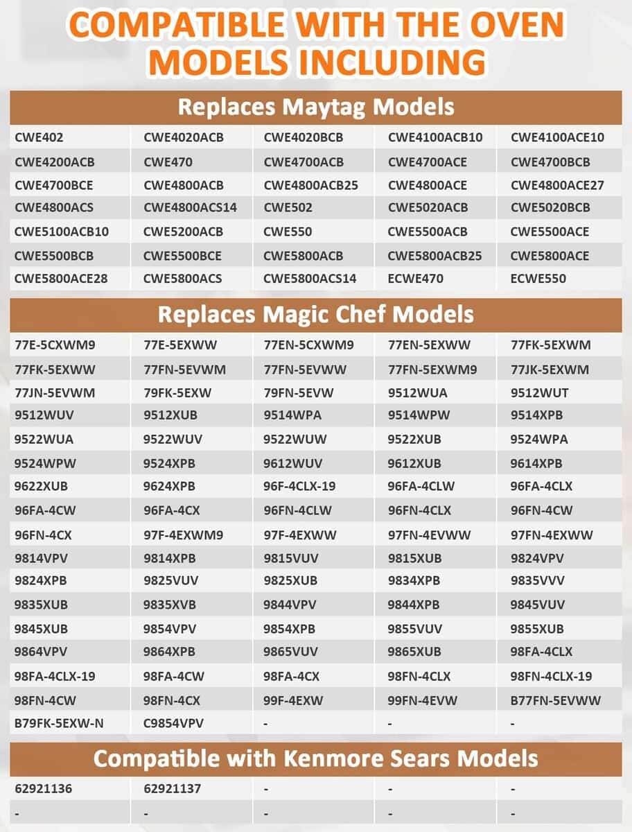 2. Se adapta al elemento de horneado de Maytag, Maytag Magic Chef Whirlpool hornos eléctricos. Elemento calefactor de horno.