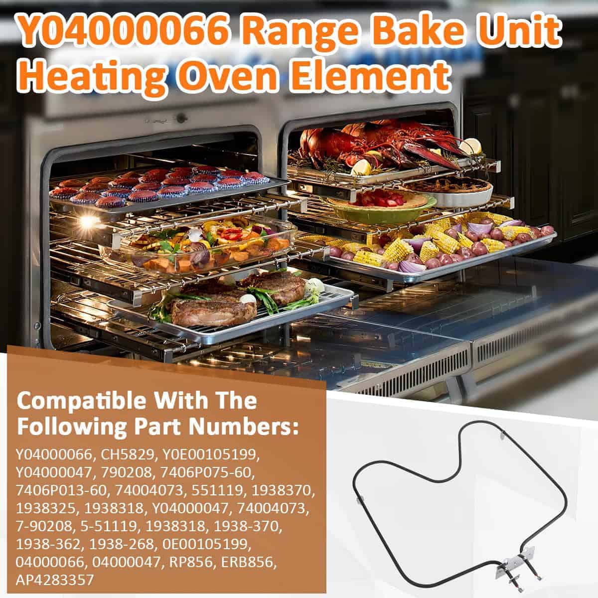 3. Elemento Calefactor de Horno Y04000066: Repuesto WPY04000066, CH5829, AP6024122, Y0E00105199, 04000047, 04000066, 0E00105199, PS11757472, 7406P424-60, 7406P075-60, 7406P013-60, 5-51119, 1242353, 790208, 74004073, 1938370, 1938325.