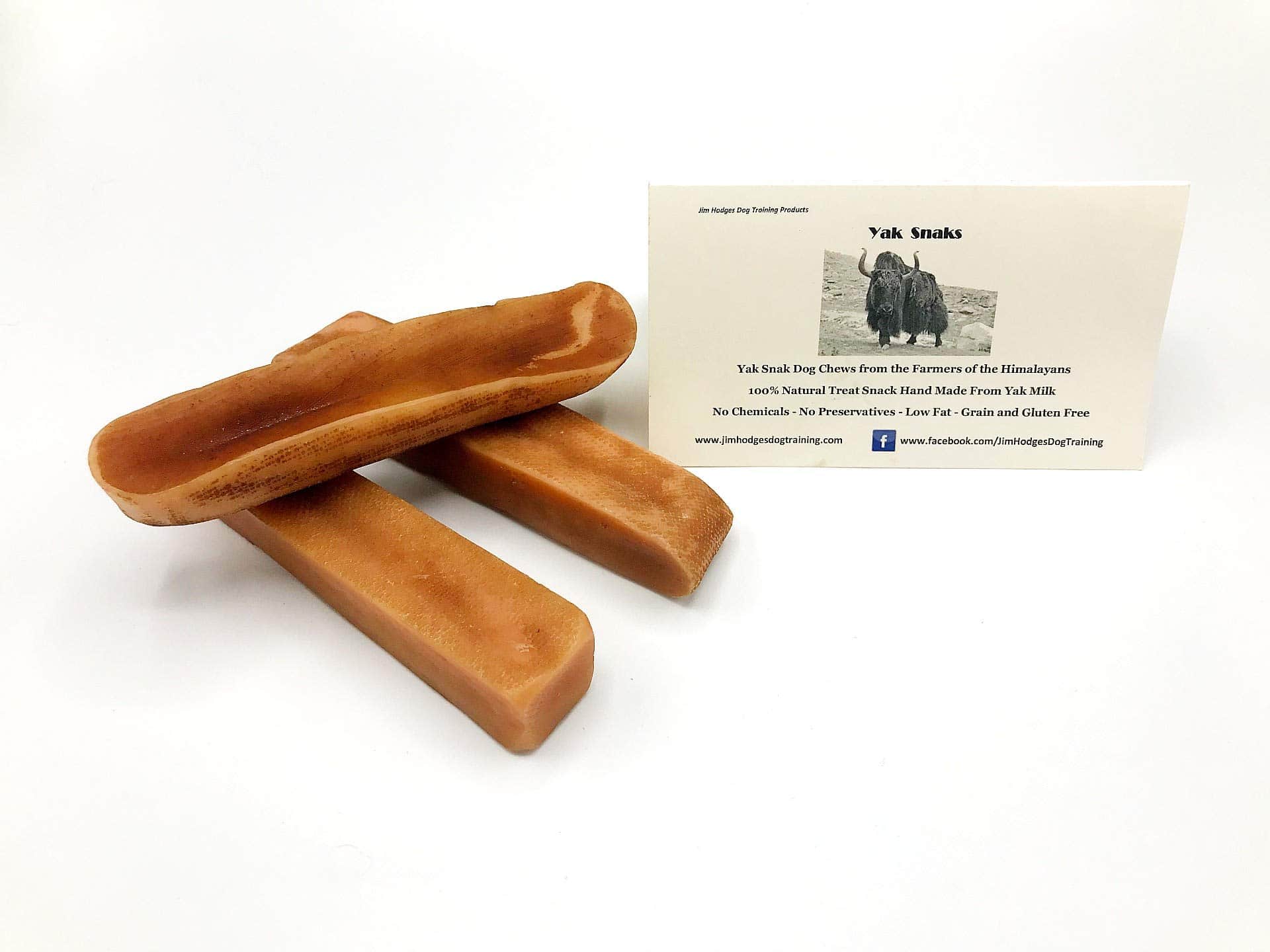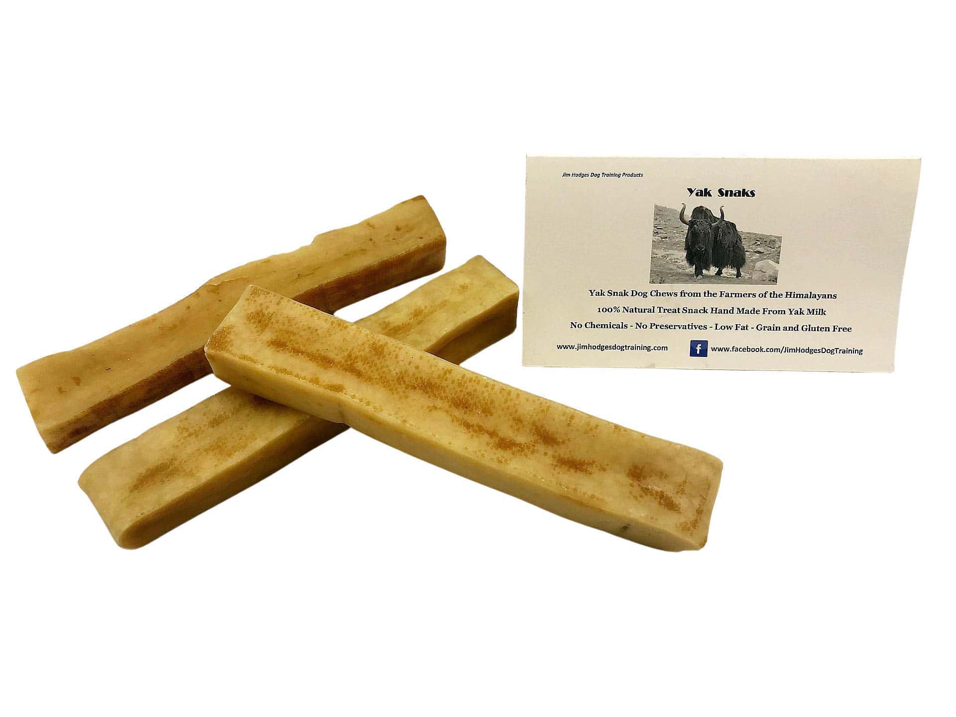 ¿Estás buscando una golosina para perros que sea natural, deliciosa, completamente comestible y dure más que un palito de buey? ¡La yak Snak es todo eso y más! – 100% natural. Sin conservantes. Sin gluten ni granos. Sin lactosa. Bajo en grasas. Todo lo que buscas al tratar de mantener un estilo de vida saludable para tu perro. La Yak Snak es una golosina de queso duro horneada derivada de leche de yak y vaca que ha sido comida durante siglos por la gente de Nepal. Ordeñada y hecha a mano por agricultores locales. Enviada a los EE. UU. Procesada y probada para un estricto control de calidad para que tú y tu cachorro podáis disfrutar de una golosina para masticar de sabor excelente y de larga duración, hecha de manera ética y respetuosa con el medio ambiente. Hay muchas formas de usar nuestras Yak Snaks. úsala como recompensa de entrenamiento, atrae la atención, como un respiro cuando necesites unos minutos para ti. ¡Incluso dale una a tu perro solo porque lo amas! – No solo es saludable y sabroso. No mancha ni huele mal y prácticamente no deja ningún desorden. – Tu perro puede ejercitar su comportamiento natural de masticación con una golosina completamente natural y comestible. Nada de plástico, goma o vinilo aquí. ¡No hay riesgo con nuestra garantía de satisfacción del 100%! Echa un vistazo en nuestra tienda. Mira nuestras muchas reseñas y prueba la Yak Snak hoy. Estás en buenas manos con JimHodgesDogTraining. Los perros son nuestra vida. ¡Y nos preocupamos por la vida de tu perro también! P. D. Las vacaciones están a la vuelta de la esquina. Compra con confianza para tu perro y los otros perros de tu vida. ¡Tus perros estarán contentos de que lo hiciste! Gracias.