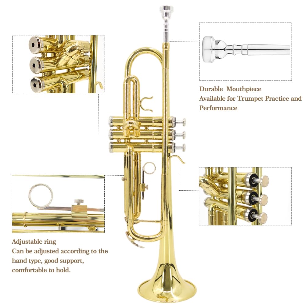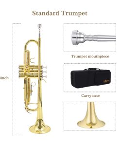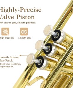 El Set de Trompeta Bb Estándar de YANASON es el instrumento perfecto para aquellos que están comenzando en el mundo de la música. Con un sonido puro y brillante, esta trompeta de estudiante está diseñada para proporcionar un timbre rico y potente con una vibración excepcional. Construido con latón de alta calidad, sus válvulas conectan de forma precisa cada tubería para garantizar una hermeticidad al aire fuerte y una alta capacidad de juego.El diseño profesional de los pistones de acero inoxidable garantiza una durabilidad excepcional durante la actuación sin preocupaciones de atascos. Con un diámetro de campana de 123 mm y un diámetro de tubería de 11.8 mm, esta trompeta ofrece un rendimiento excepcional.Con el Set de Trompeta Bb Estándar de YANASON, recibirás la trompeta, un estuche portátil ligero para transportarla cómodamente, un kit de limpieza para mantenerla en óptimas condiciones, una boquilla 7C para facilitar la ejecución y guantes para mayor comodidad al tocar.¡Comienza tu viaje musical con la confianza de YANASON y su set de trompeta de alta calidad!