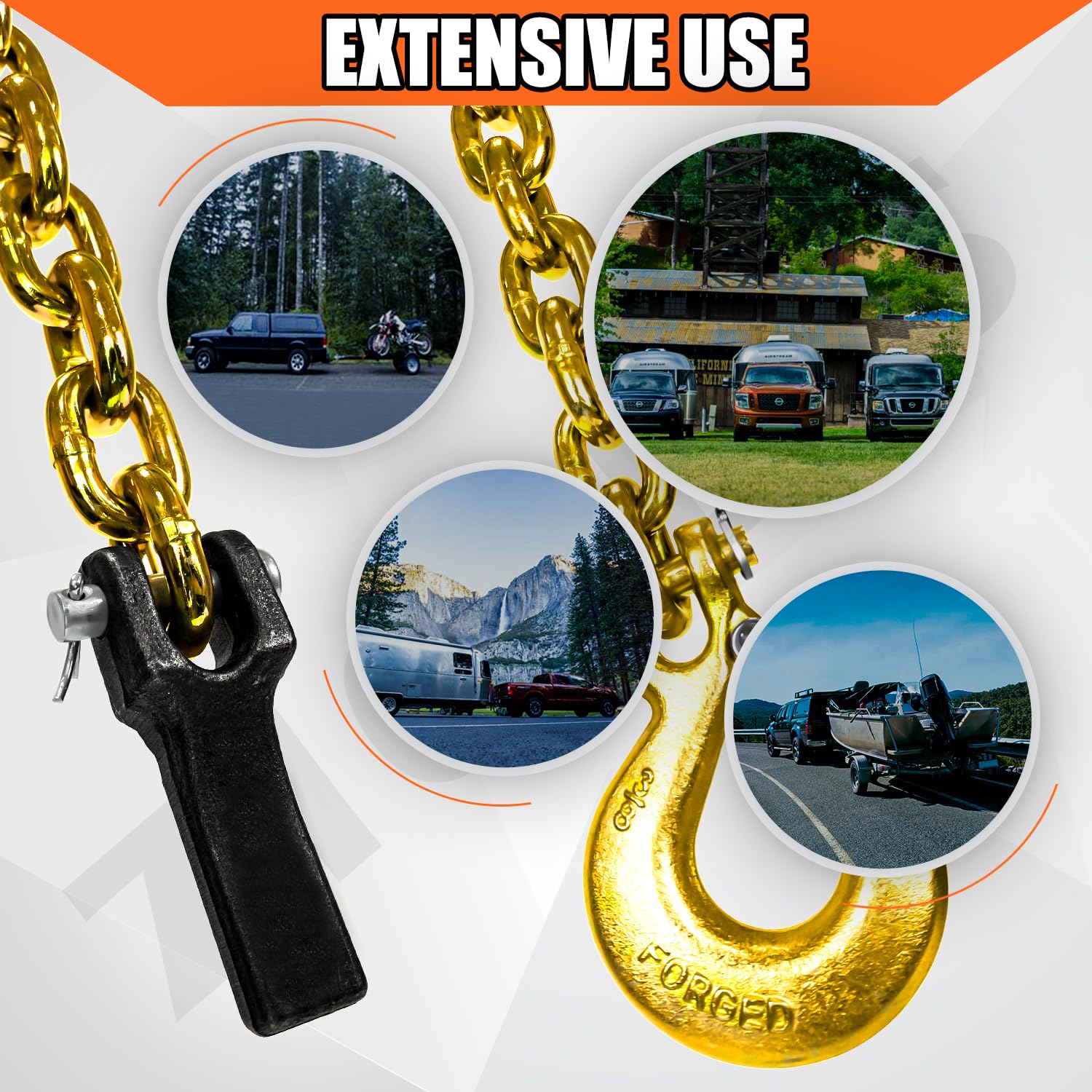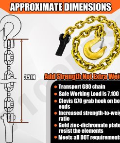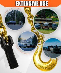 El diseño profesional de estas cadenas está pensado para resistir la separación completa entre el vehículo y el remolque en caso de desconexión. Es recomendable utilizar dos cadenas al conectarlas para remolcar. La construcción resistente de la cadena de tamaño estándar de 3/8″ con eslabones normales garantiza una calidad superior y durabilidad.
