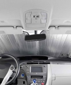 5. Instalación fácil: Desenrollar sobre el tablero, doblar el protector solar detrás del espejo retrovisor y bajar las viseras solares. Para guardar, simplemente enrolle el protector solar y sujételo con la correa de velcro adjunta.