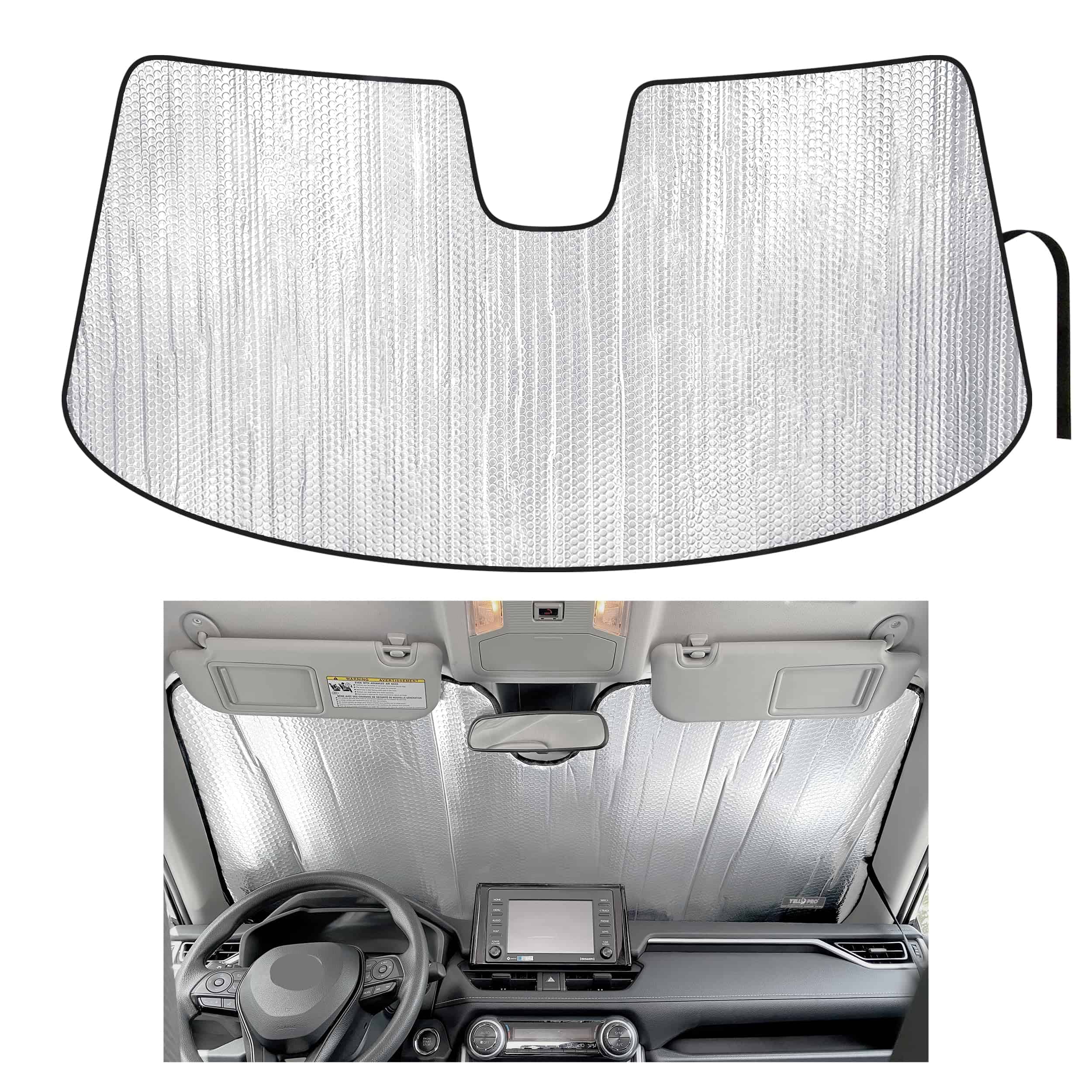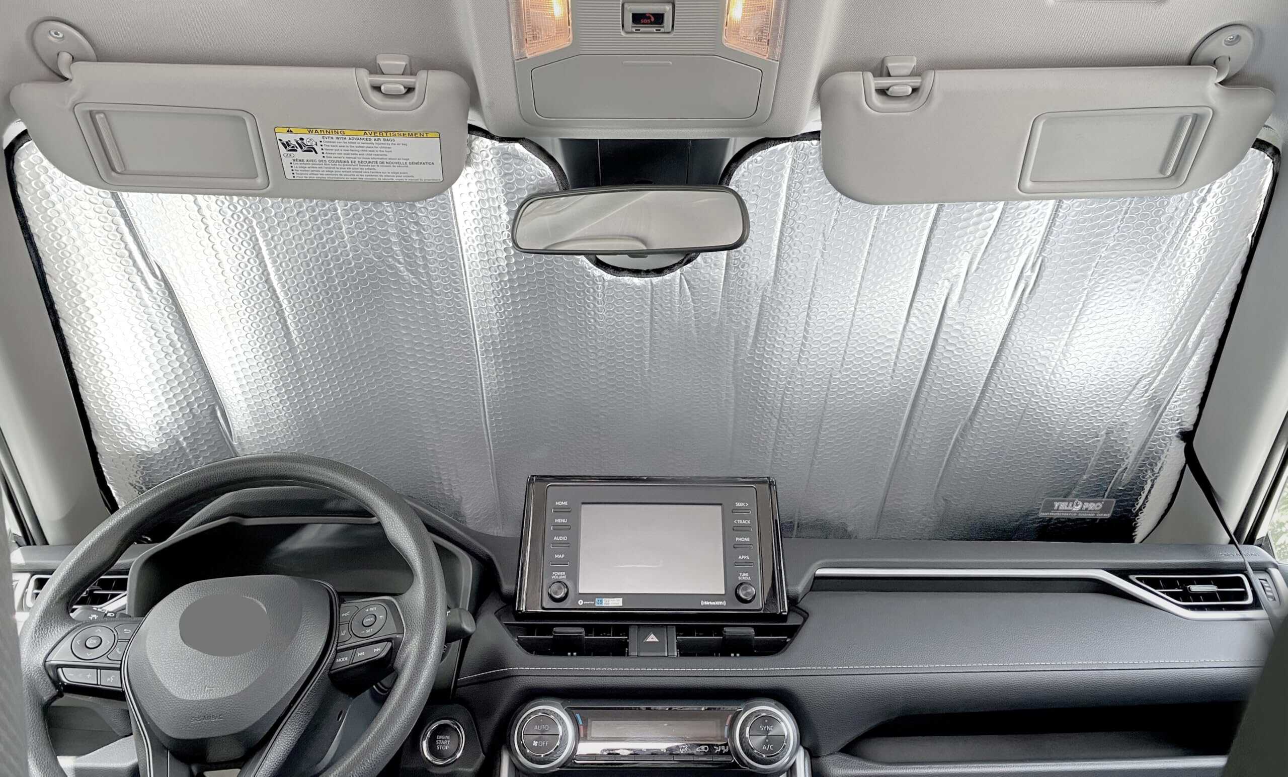 1. Corte de precisión por computadora para adaptarse a tu vehículo. ¡ORGULLOSAMENTE HECHO EN EE. UU!. 2. Refleja hasta el 98% de la luz solar entrante. Diseño de sombra solar enrollable ligero. 3. Reduce las temperaturas interiores diurnas en vehículos estacionados en 40 grados Fahrenheit (20 grados Celsius) o más. 4. Ayuda a proteger los asientos de cuero de agrietarse y desvanecerse, manteniendo el volante y la perilla de cambios cómodos al tacto. 5. Instalación fácil: Desenrolla sobre el tablero, doble la sombra solar detrás del espejo retrovisor y baje las viseras. Para guardar, simplemente enrolla la sombra solar y asegúrala con la correa de velcro adjunta.