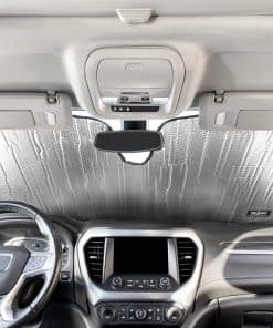 1. Cortado con precisión por computadora para adaptarse a su vehículo personalizado. ¡ORGULLOSAMENTE HECHO EN EE. UU! . 2. Refleja hasta el 98% de la luz solar entrante. Diseño liviano enrollable de protector solar. 3. Reduce las temperaturas interiores diurnas en vehículos estacionados en 40 grados Fahrenheit (20 grados Celsius) o más. 4. Ayuda a proteger los asientos de cuero de agrietarse y desvanecerse, mientras mantiene el volante y la perilla de cambios cómodos al tacto. 5. Instalación fácil: desenrolle sobre el tablero, doble el protector solar detrás del espejo retrovisor y baje las viseras. Para almacenar, simplemente enrolle el protector solar y asegúrelo con la correa de velcro adjunta.