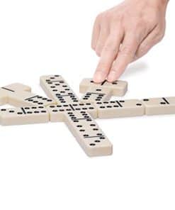 Un set de 28 piezas de dominó doble 6 tamaño jumbo para torneos, reminiscente de las fichas clásicas antiguas. Incluye un estuche de madera de roble bellamente acabado.