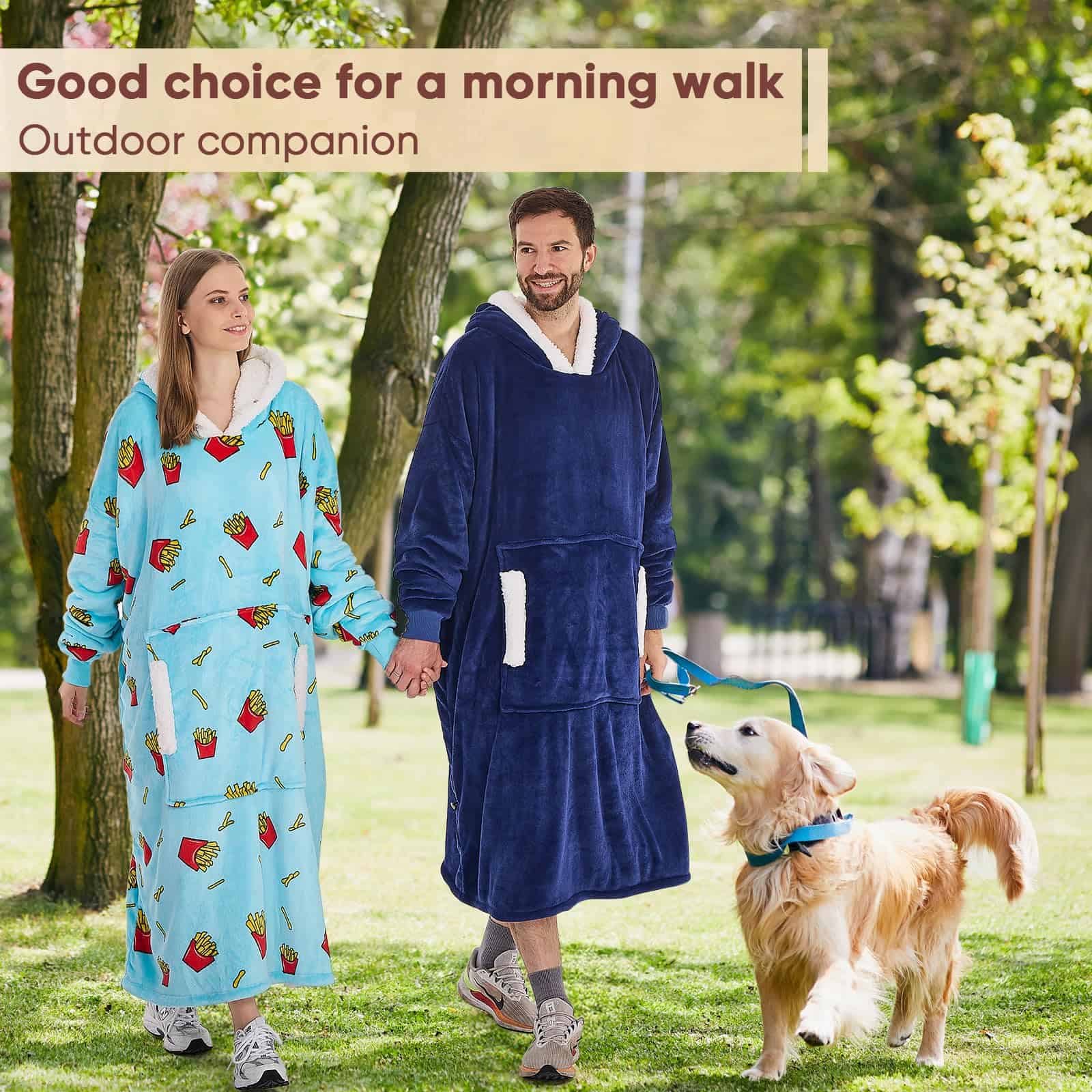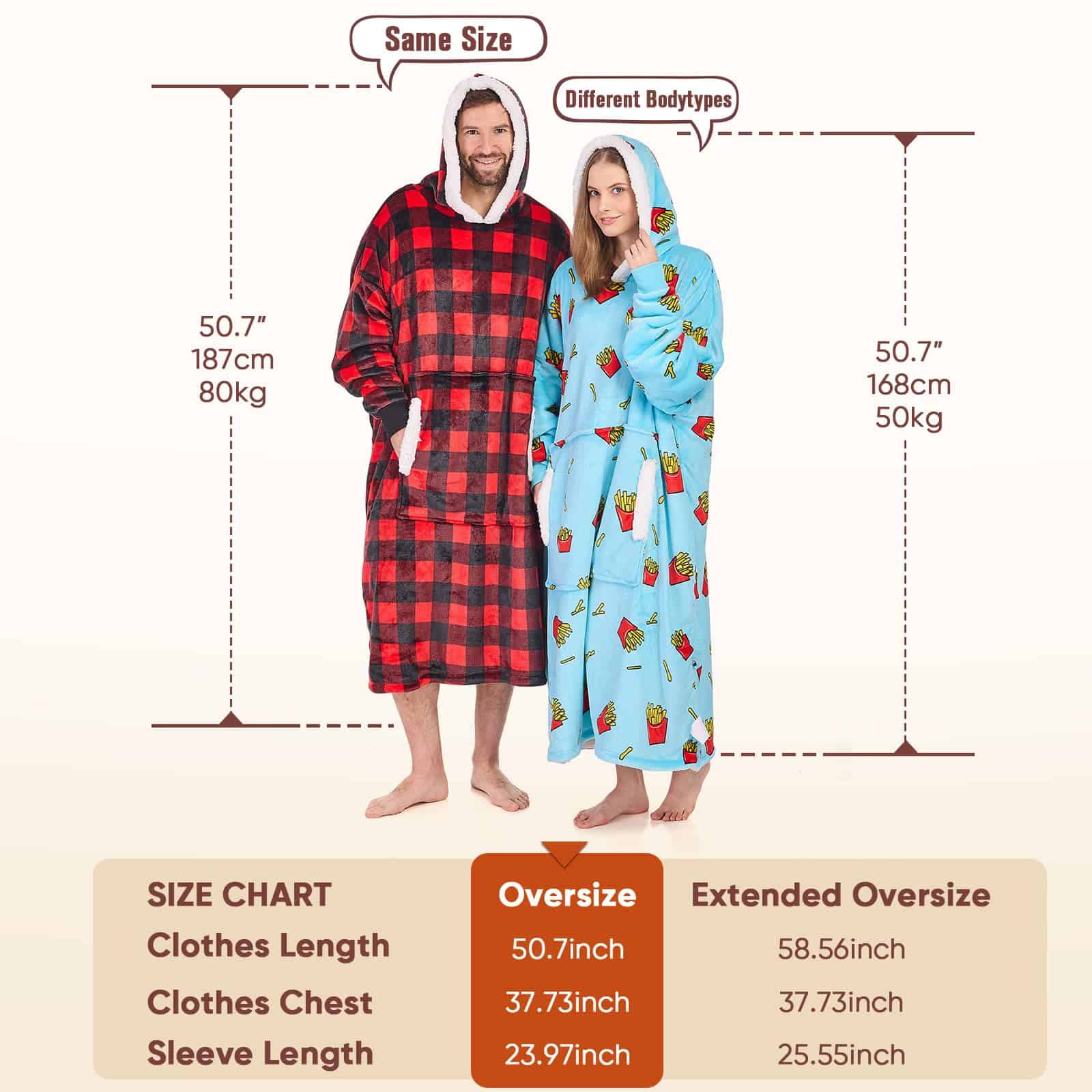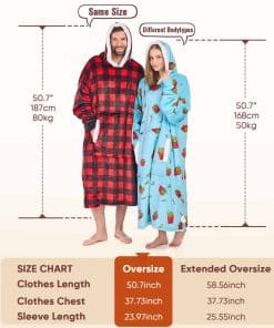 ¿Estás cansado de vestir múltiples capas de ropa en una mañana de invierno? ¿Te quejas con tus amigos de que el frío te impide levantarte temprano? La manta sudadera de gran tamaño que te permite vestirte rápidamente y calienta tu cuerpo en segundos te dará la respuesta. La sudadera con capucha con forro de forro polar te brinda un tacto suave, perfecto para mantenerte abrigado en cualquier clima frío. Si decides tener una manta wearable ahora, no dudes por caídas y sensación voluminosa que ofrecen otras mantas, lo hemos resuelto. Nuestra sudadera sherpa con axilas y mangas reforzadas permite a tus brazos extenderse fieramente, saltar del sofá o la cama directamente. La manta con capucha para adultos con una longitud de 47-50 pulgadas estará por debajo de tus rodillas y sobre tus tobillos, lo que significa que no arrastra en el suelo al pararte, permitiendo mayor libertad de movimiento. ¡Un regalo ideal para mujeres y mamá como regalos de cumpleaños o Navidad, haciendo que regalar sea muy fácil!