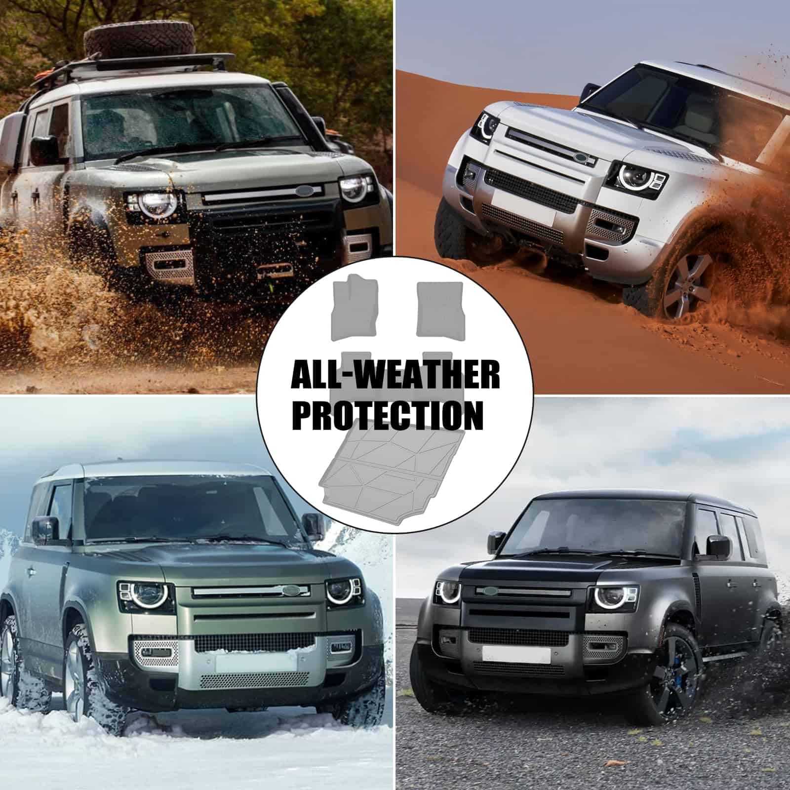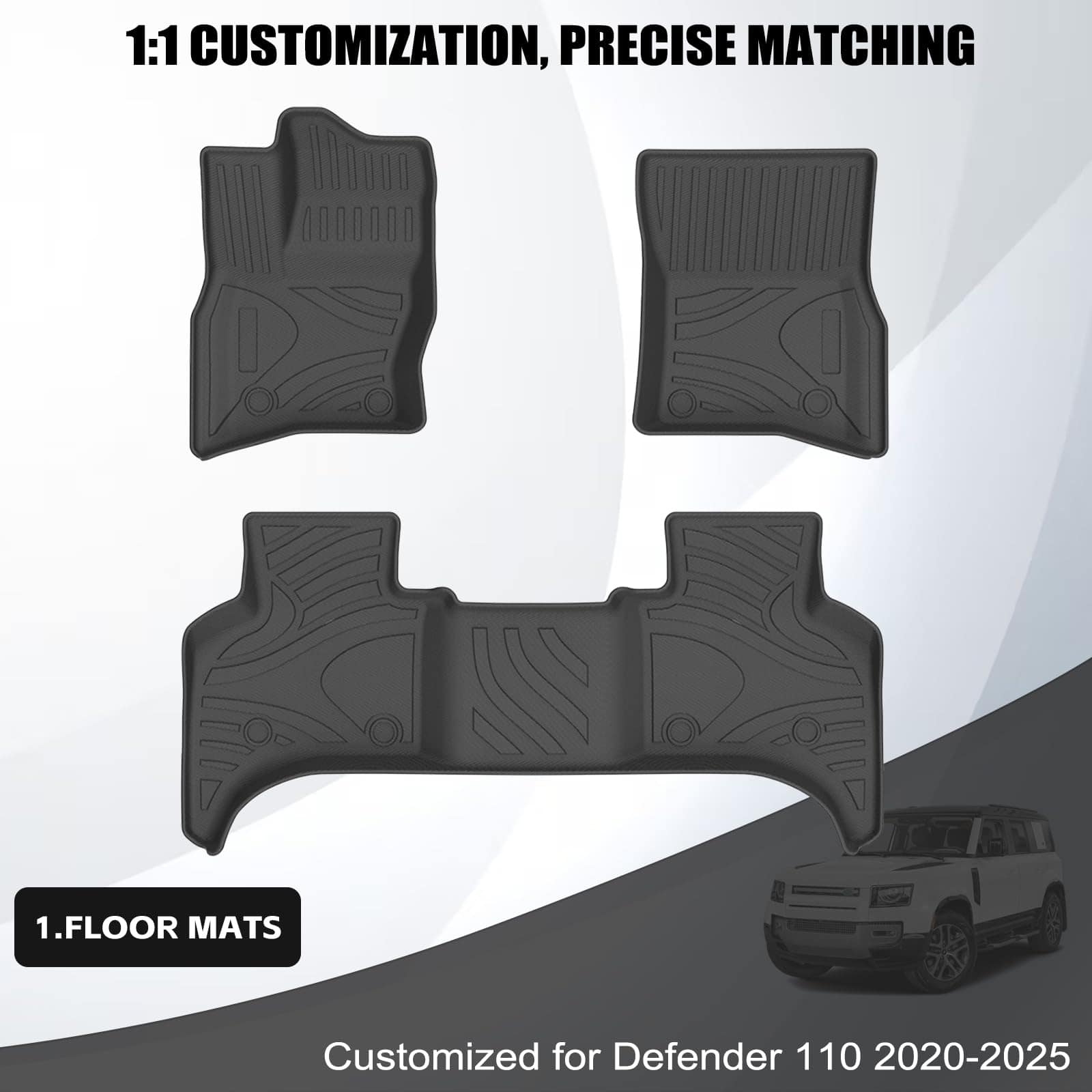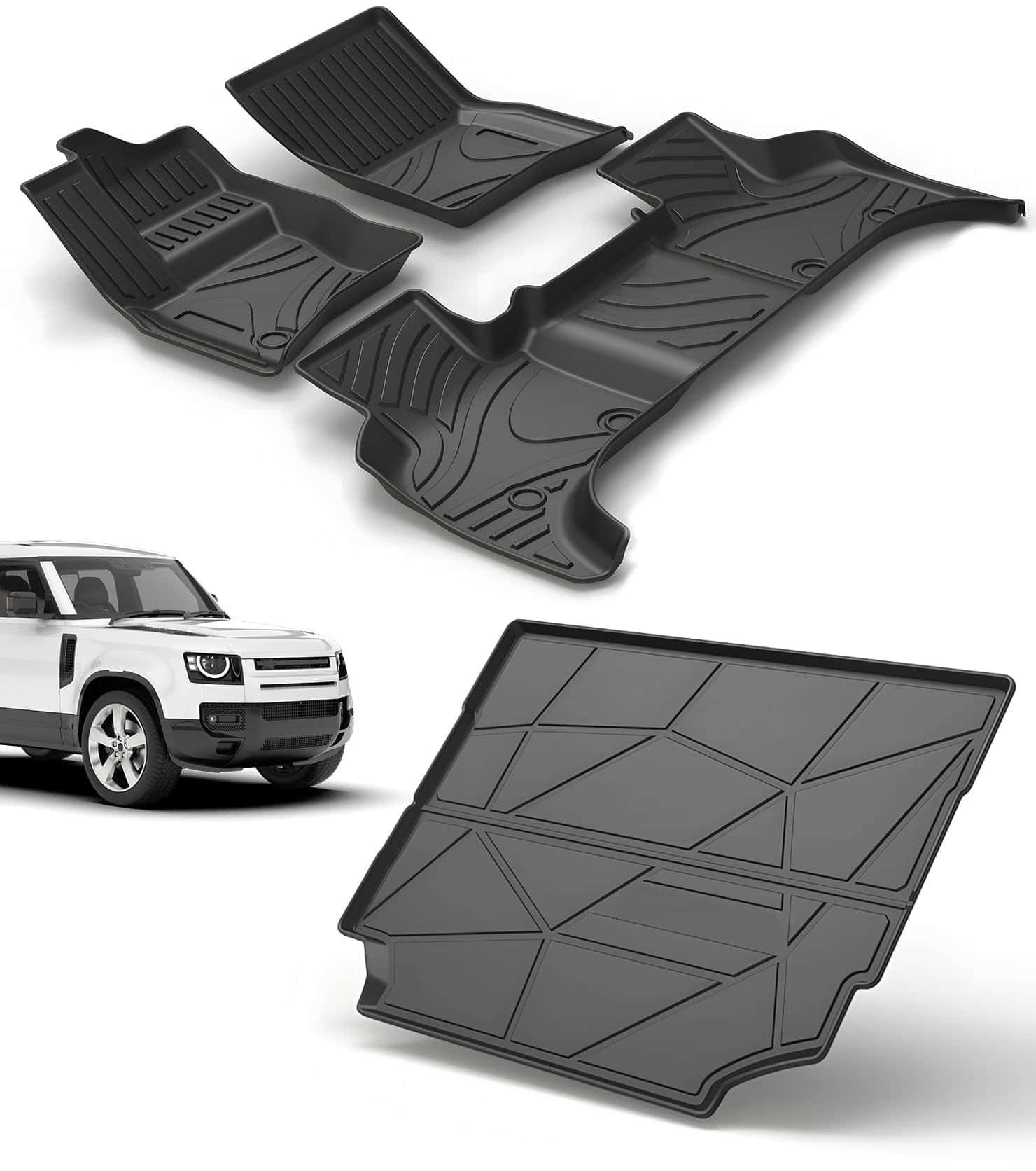 Juego de tapetes personalizados y forro de carga para Land Rover Defender 110 2020-2025, todo clima TPE completo (4 puertas, 5 asientos), antideslizante 4 piezas, negro