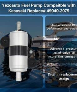 La Bomba de Combustible Externa / en Línea de Yezoauto es compatible con los modelos Kawasaki FD661D, FD791D, FD851D y Cub Cadet M60, M72. Este producto incluye 1 bomba de combustible y tiene un intercambio de OE de 49040-2079 y 490402079. Con 1 año de garantía del fabricante, esta bomba de combustible ha sido probada al 100% antes del envío para garantizar seguridad, estabilidad y durabilidad. Antes de comprar, asegúrese de que el número de OE coincida y de que esta parte sea compatible con su vehículo.