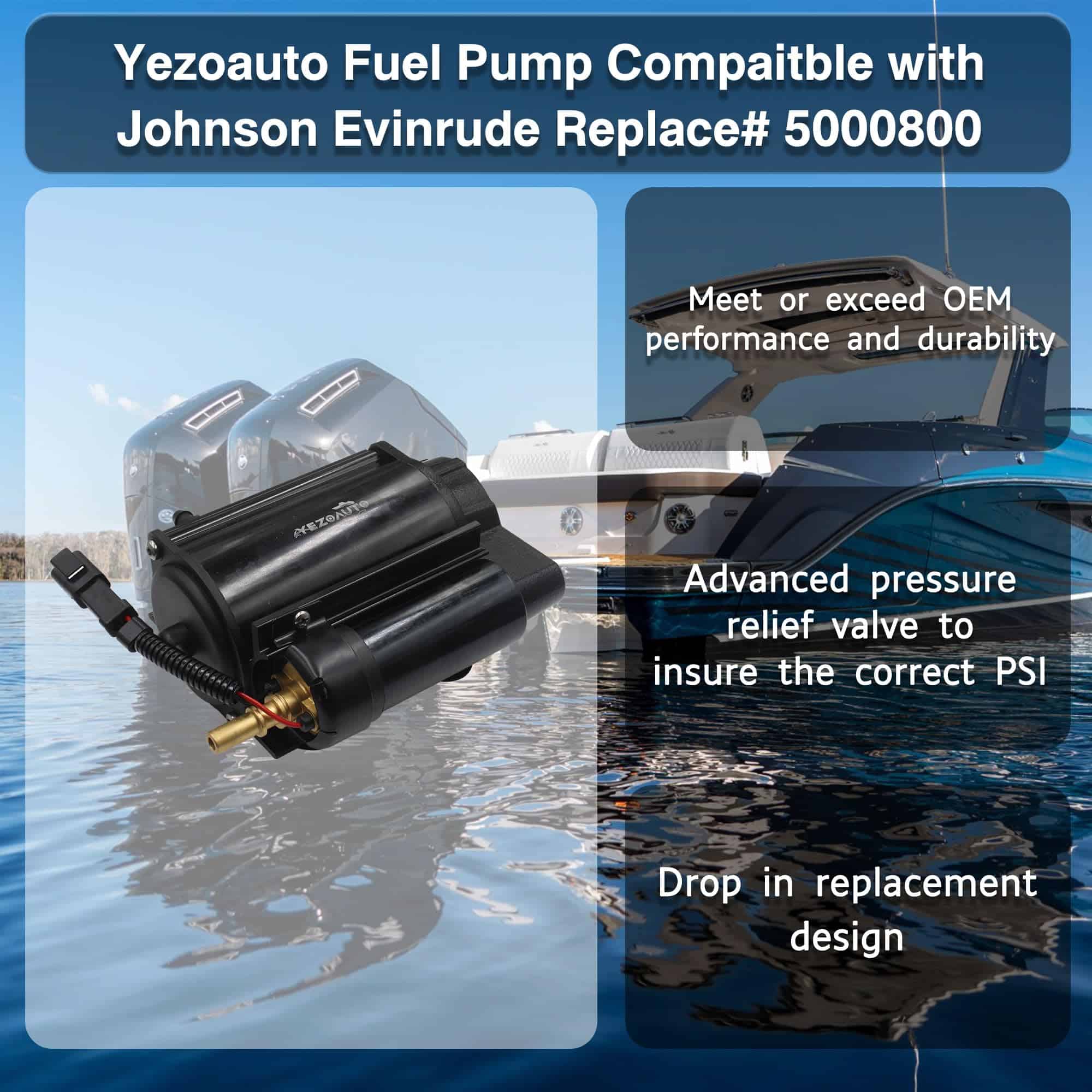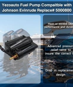 Yezoauto Fuel Pump Assembly es una pieza de repuesto de alta calidad para motores Johnson Evinrude OMC BRP. Esta bomba de combustible es fundamental para el sistema de suministro de combustible de su vehículo, garantizando un suministro limpio y presurizado de combustible a los inyectores. Con el número de parte de intercambio OE 5004428 0439347 439347 5000800, puede estar seguro de que esta bomba de combustible es compatible con motores de 75hp a 175hp para motores fuera de borda de 2000 a 2006.