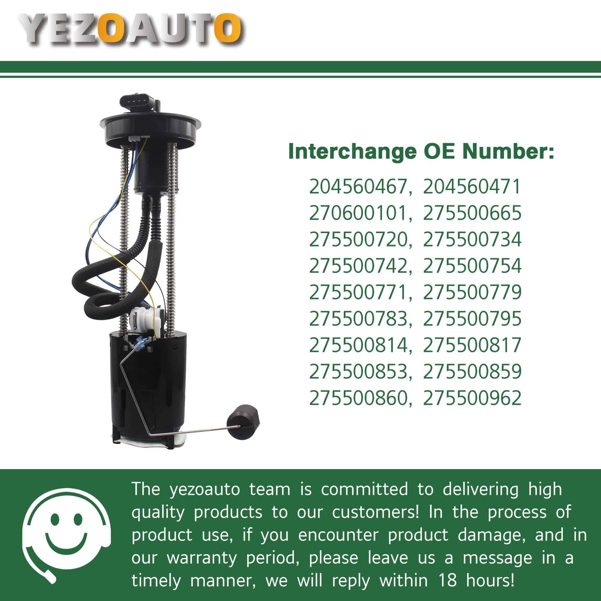 1. Bomba de combustible Yezoauto compatible con SEA-DOO GTI GTS GTX RXP RXT Speedster Challenger Wake SP 2008-2012, reemplazando a 275500734 y 275500779. 2. Números de intercambio OE 204560467, 204560471, 270600101, 275500665, 275500720, 275500734, 275500742, 275500754, 275500771, 275500779, 275500783, 275500795, 275500814, 275500817, 275500853, 275500859, 275500860, 275500962. 3. Función principal de suministrar combustible limpio y presurizado a los inyectores de combustible.