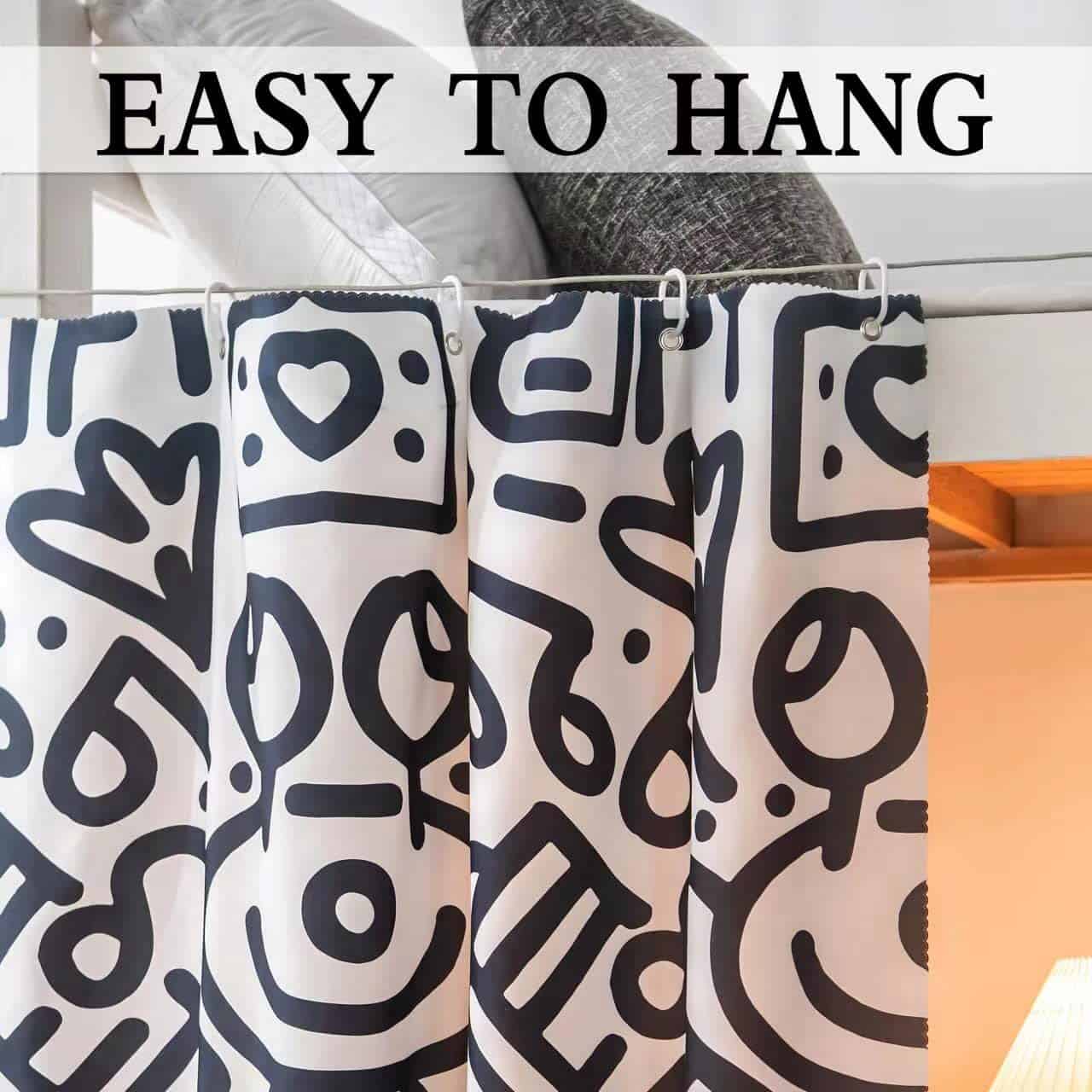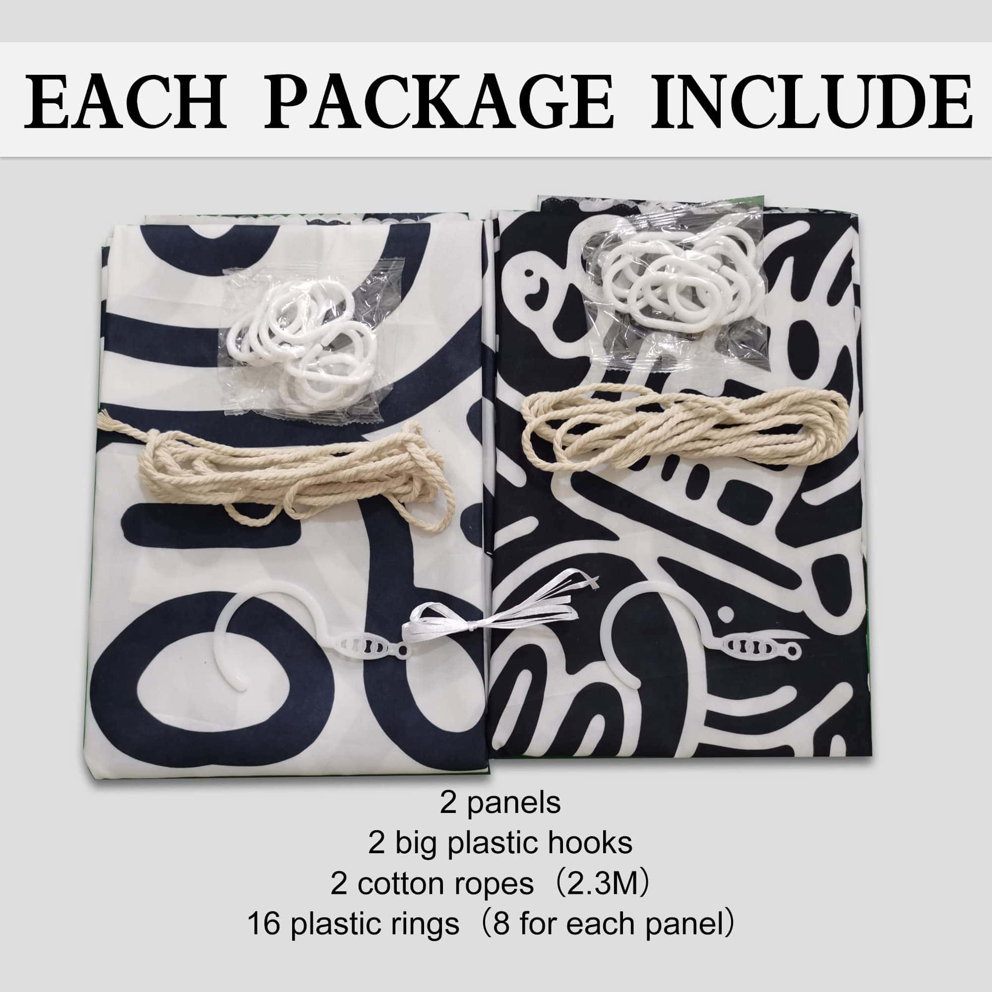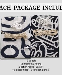 4. Fácil de instalar: Cada pieza de cortina viene con 8 anillos de plástico y 1 cuerda de algodón de 2.3m para asegurar la cortina. Según las instrucciones, es simple y conveniente de instalar.